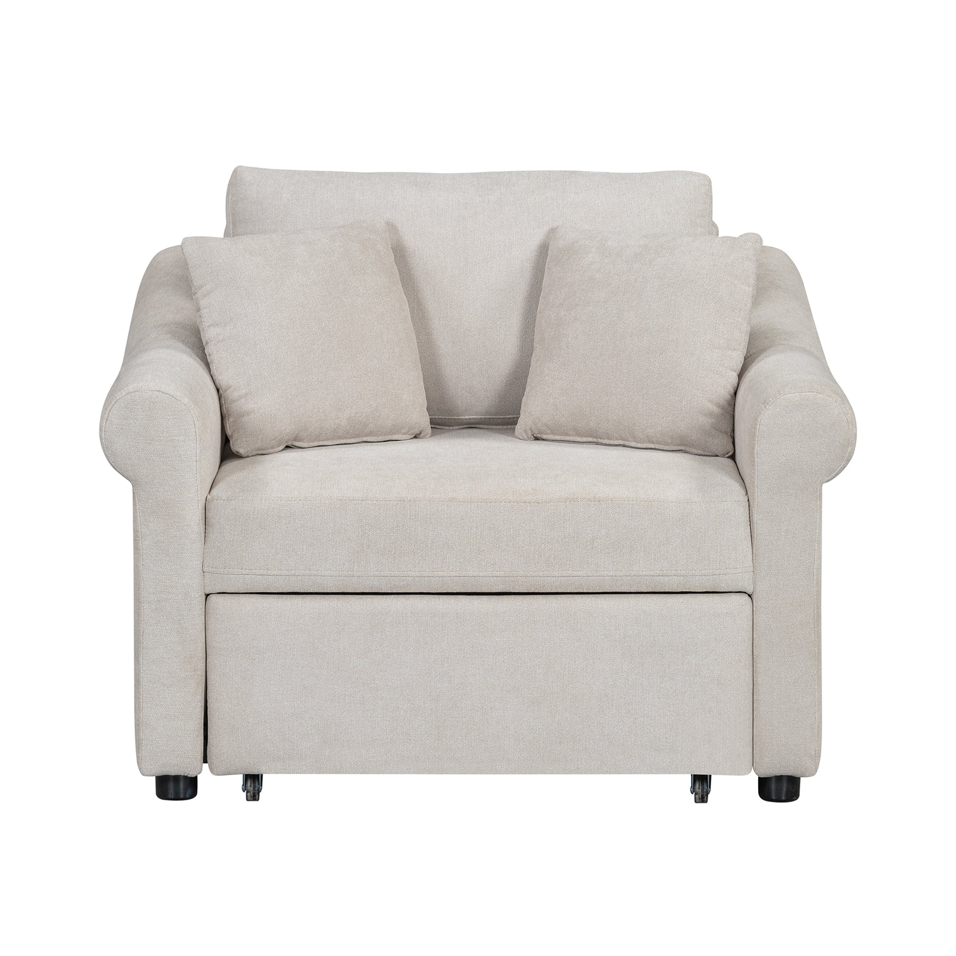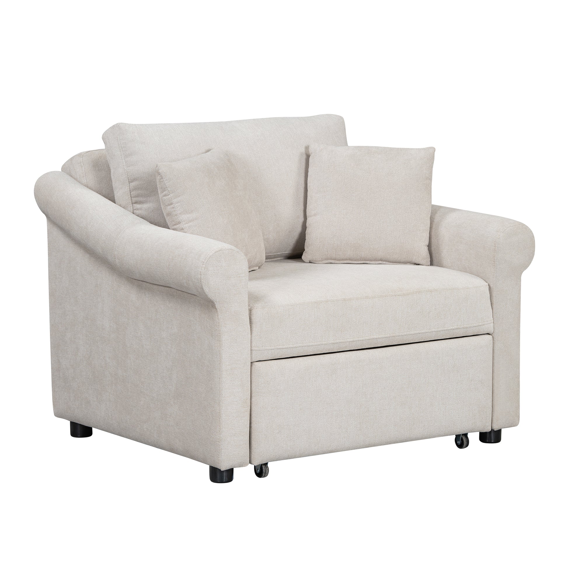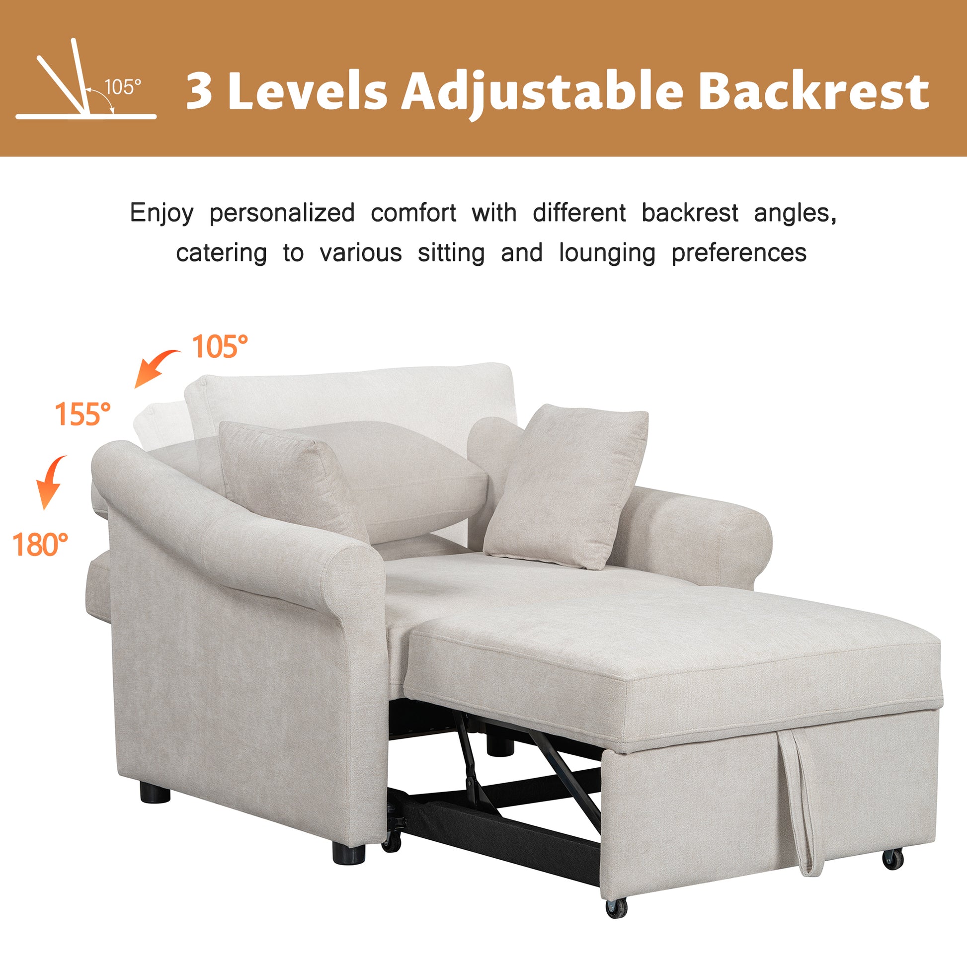 Name: Chenille Convertible Sleeper Chair with Adjustable Backrest, 3 In 1 Lounger Chair Turns Into Bed, Single Bed for Living Room, Beige