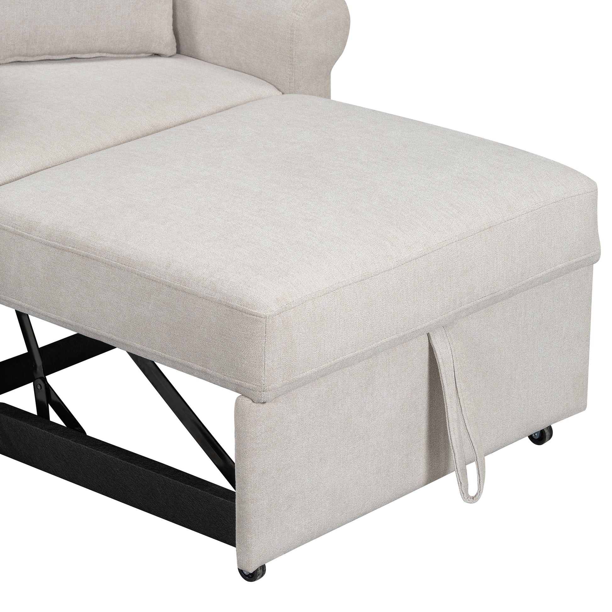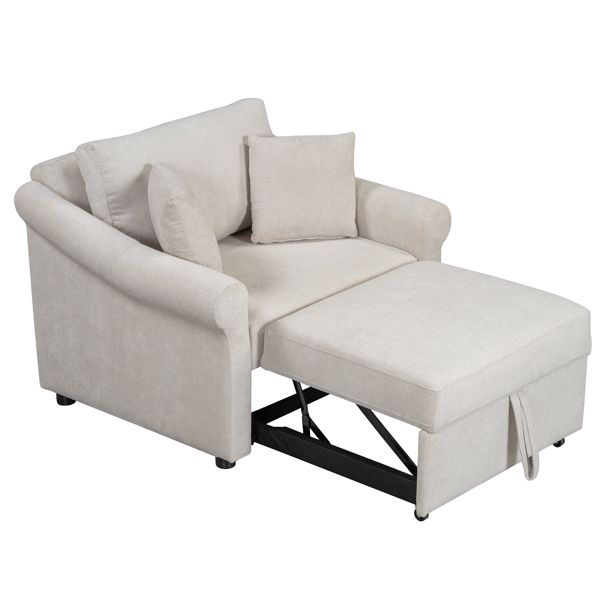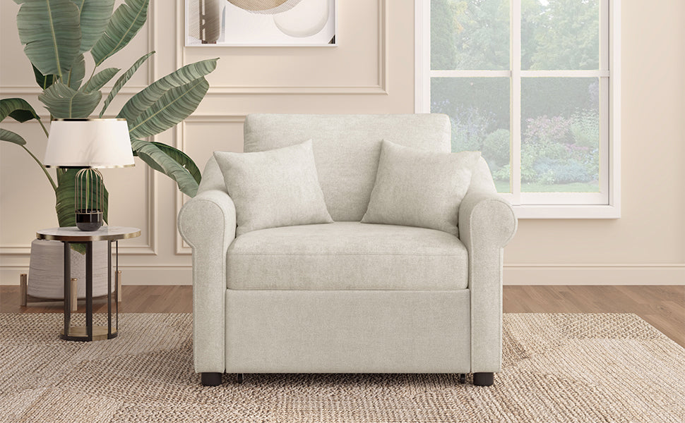 Name: Chenille Convertible Sleeper Chair with Adjustable Backrest, 3 In 1 Lounger Chair Turns Into Bed, Single Bed for Living Room, Beige