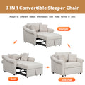 Chenille Convertible Sleeper Chair With Adjustable Backrest, 3 In 1 Lounger Chair Turns Into Bed, Single Bed For Living Room, Beige Beige Chenille