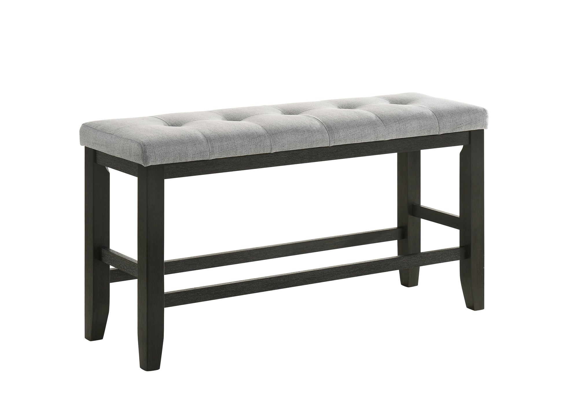 Contemporary 6Pc Counter Height Dining Set 18" Extendable Leaf Table Gray Fabric Upholstered Chair Bench Seats Wheat Charcoal Finish Wooden Solid Wood Dining Room Wooden Furniture Wood Wood Charcoal Ladder Back Seats 6 Wood Dining Room Extendable Modern
