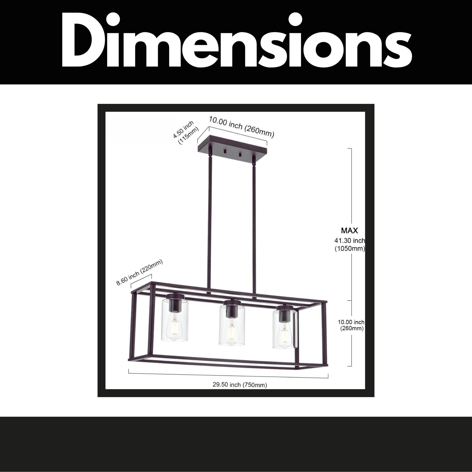 Contemporary Chandeliers Black 3 Light Modern Dining Room Lighting Fixtures Hanging, Kitchen Island Cage Linear Pendant Lights Farmhouse Flush Mount Ceiling Light With Glass Shade Oil Rubbed Bronze Metal