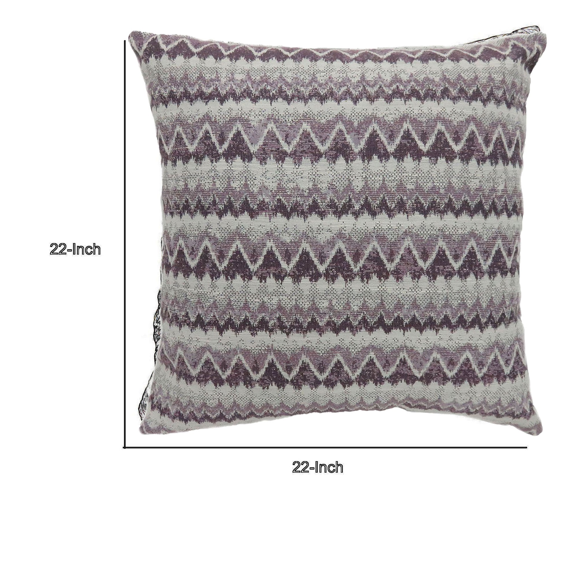 Contemporary Style Horizontally Zigzag Designed Set Of 2 Throw Pillows, Purple Purple Polyester