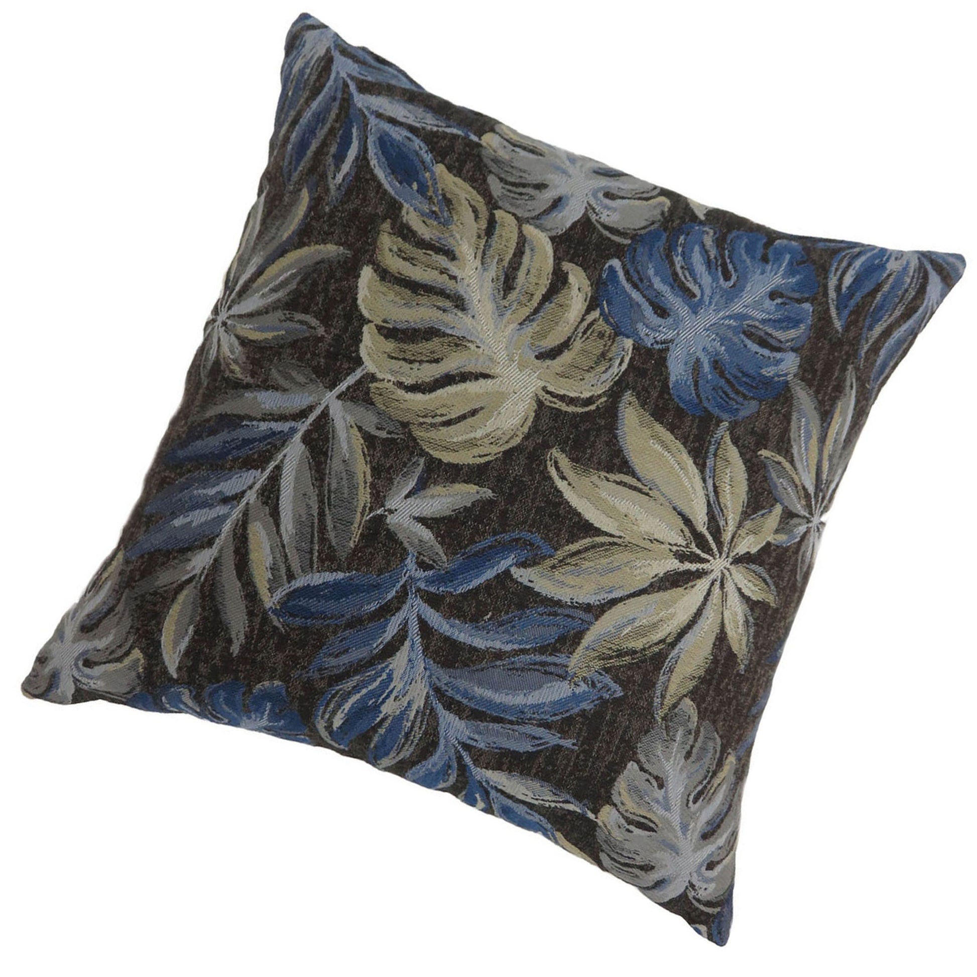 Contemporary Style Leaf Designed Set Of 2 Throw Pillows, Navy Blue Navy Blue Polyester