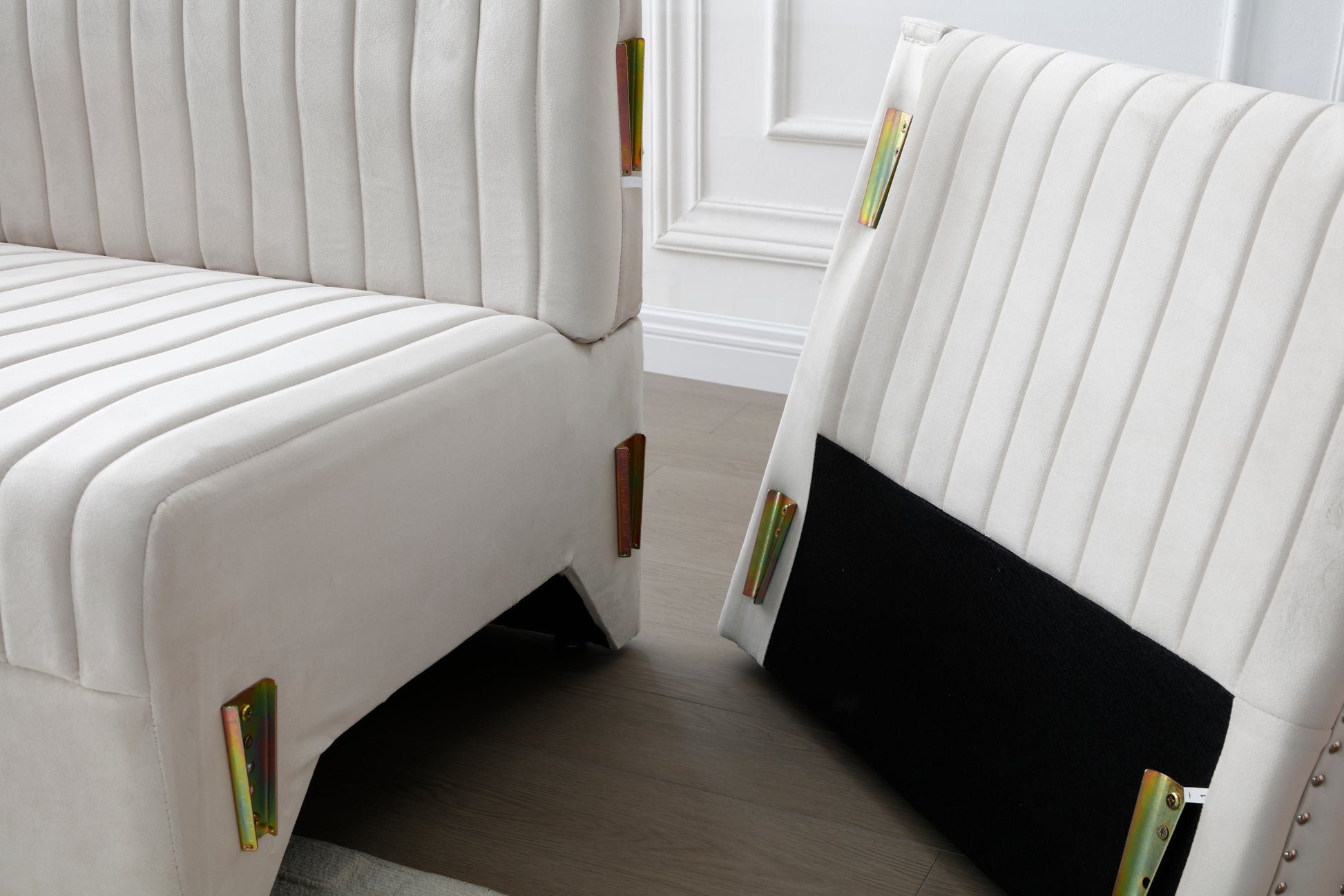 Contemporary Vertical Channel Tufted Velvet Sectional Sofa Modern Upholstered Corner Couch For Living Room Apartment With 4 Pillows,Beige Beige Primary Living Space Velvet