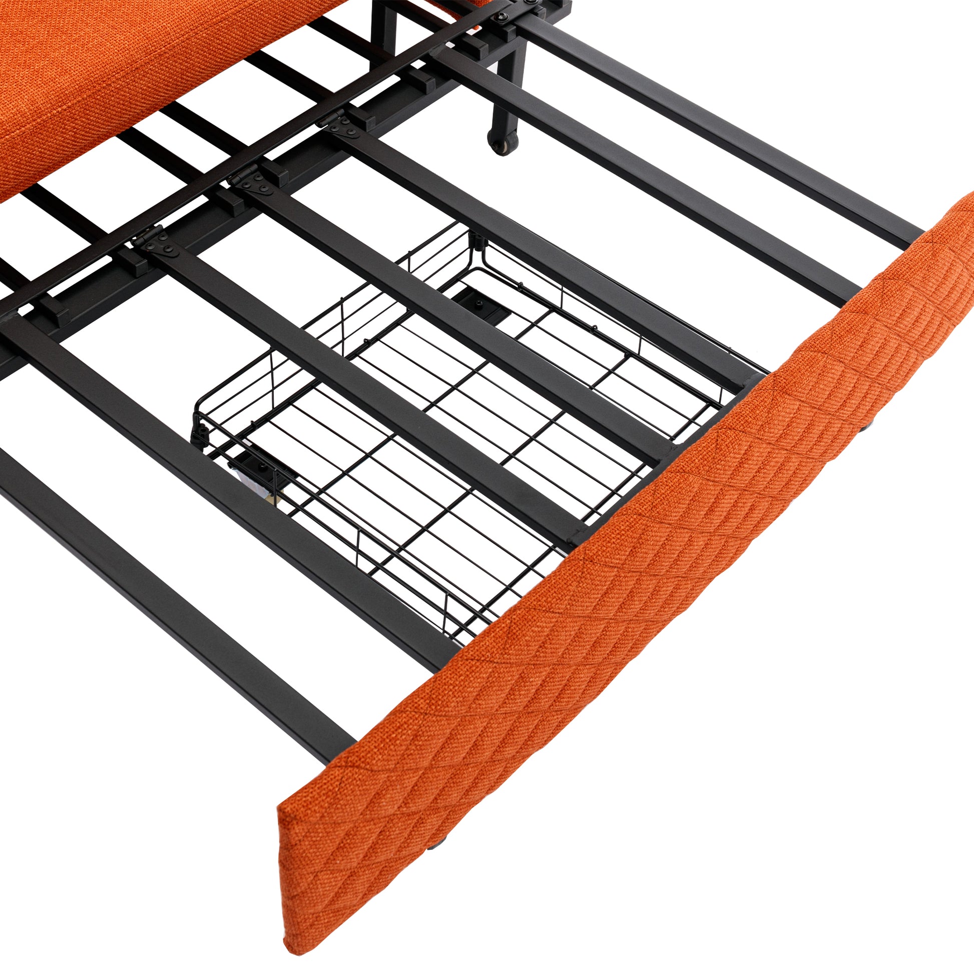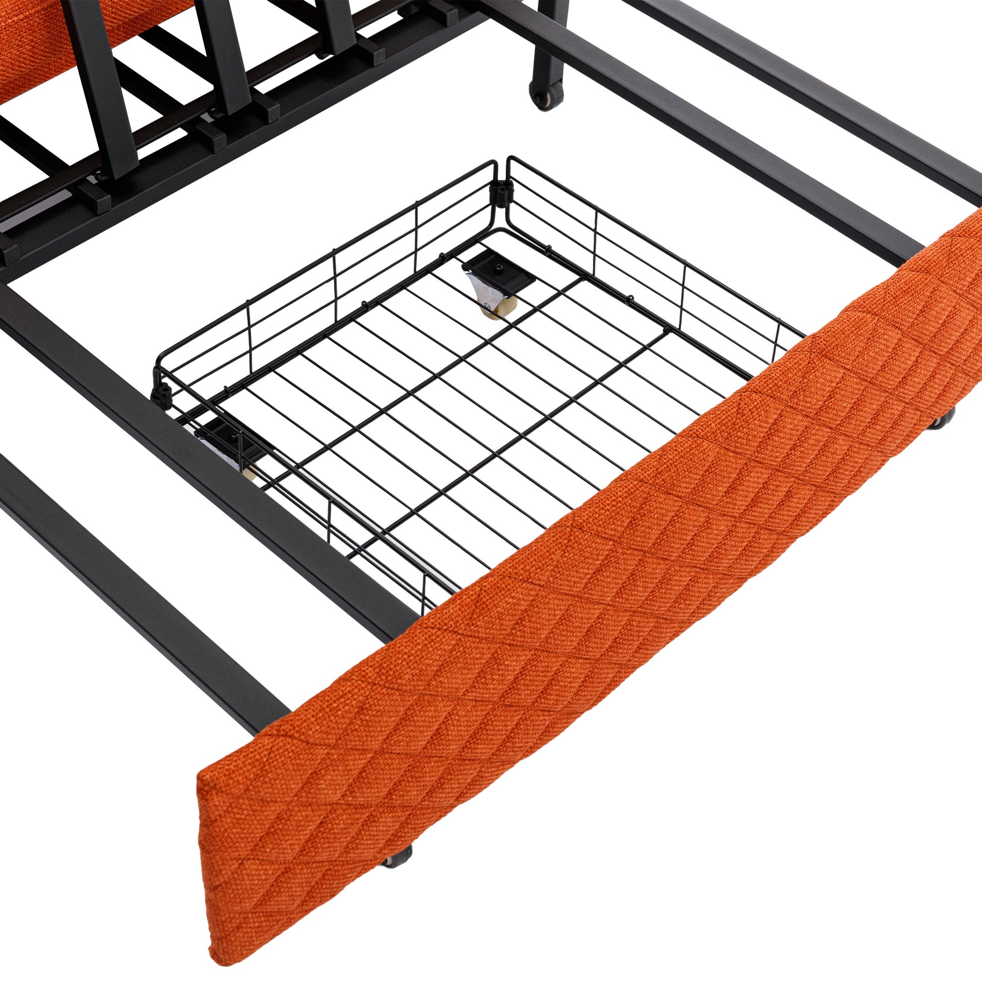 The pull out sofa bed frame is made of sturdy metal for super stability and durability, and can easily support the weight of two adults, max capacity up to 400lbs.