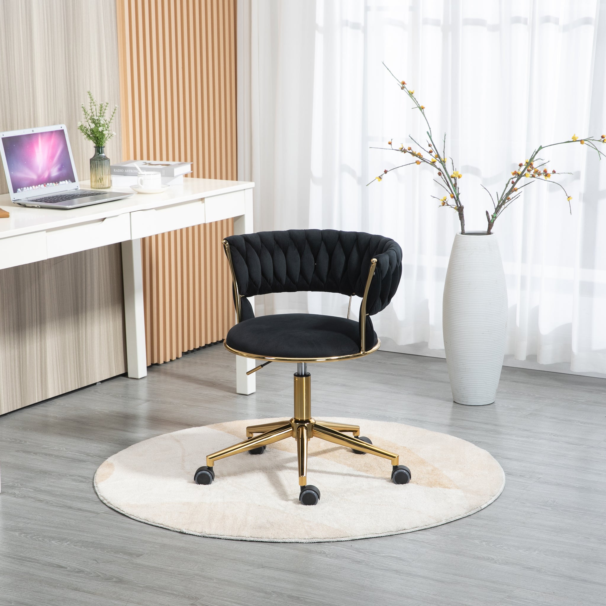 Coolmore Home Office Desk Chair, Vanity Chair, Modern Adjustable Home Computer Executive Chair Swivel Task Chair For Small Space, Living Room, Make Up, Studying Black Polyester