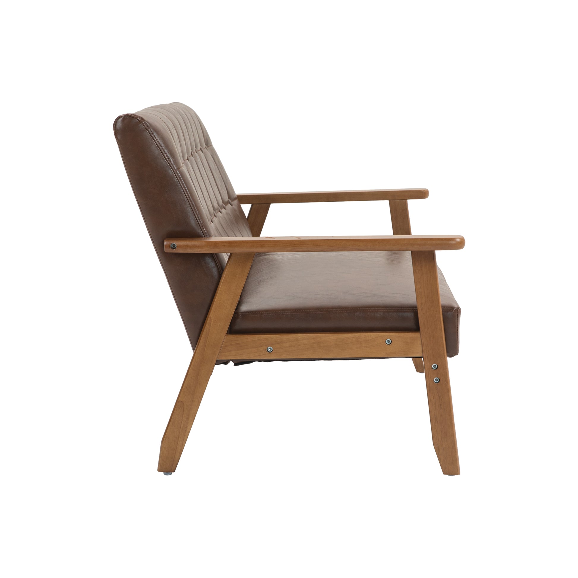 Coolmore Mid Century Modern Solid Loveseat Sofa Upholstered Pu Leather Loveseat, 2 Seat Upholstered Loveseat Sofa Modern Couch Brown Pu Pu Leather 2 Seat