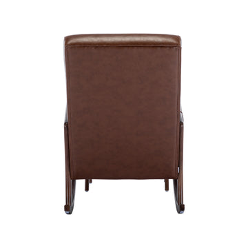Coolmore Rocking Chair With Ottoman, Mid Century Modern Upholstered Fabric Rocking Armchair, Rocking Chair Nursery With Thick Padded Cushion, High Backrest Accent Glider Rocker Chair For Living Room Brown Pu Solid Wood