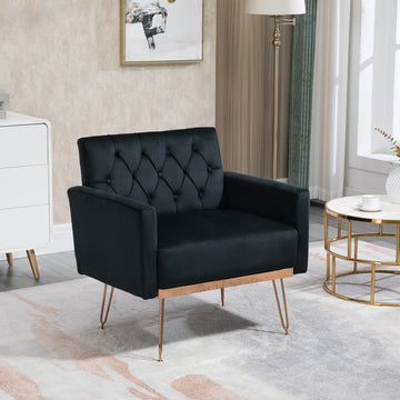 Name: Coolmore Velvet Armchair Single Sofa Modern Tufted Upholstered Side Reading Chairs with Arm and Gold Metal Leg for Living Room Bedroom ( Black )