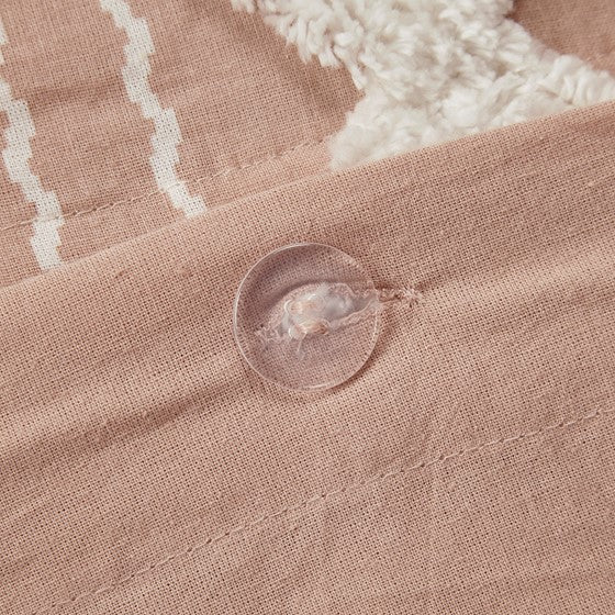 Bring a soft, mid-century look to your bedroom with the Imani Cotton Duvet Cover Mini Set. The cotton duvet cover features geometric prints with tufted chenille that adds dimension and charm, while the solid reverse complements the eye-catching patterns seen on top of the bed. Button closure and four inside corner ties allow you to place and secure a comforter insert within the duvet cover, for warmth and comfort. Two cotton shams reiterate the designs of the duvet cover, creating a stunning coordinated look. Made from 100% cotton, this duvet cover mini set is machine washable and offers a refreshingly soft update to your bedroom decor. This bedding set is also Oeko-tex certified, meaning it does not contain any harmful substances or chemicals, ensuring quality comfort and wellness.