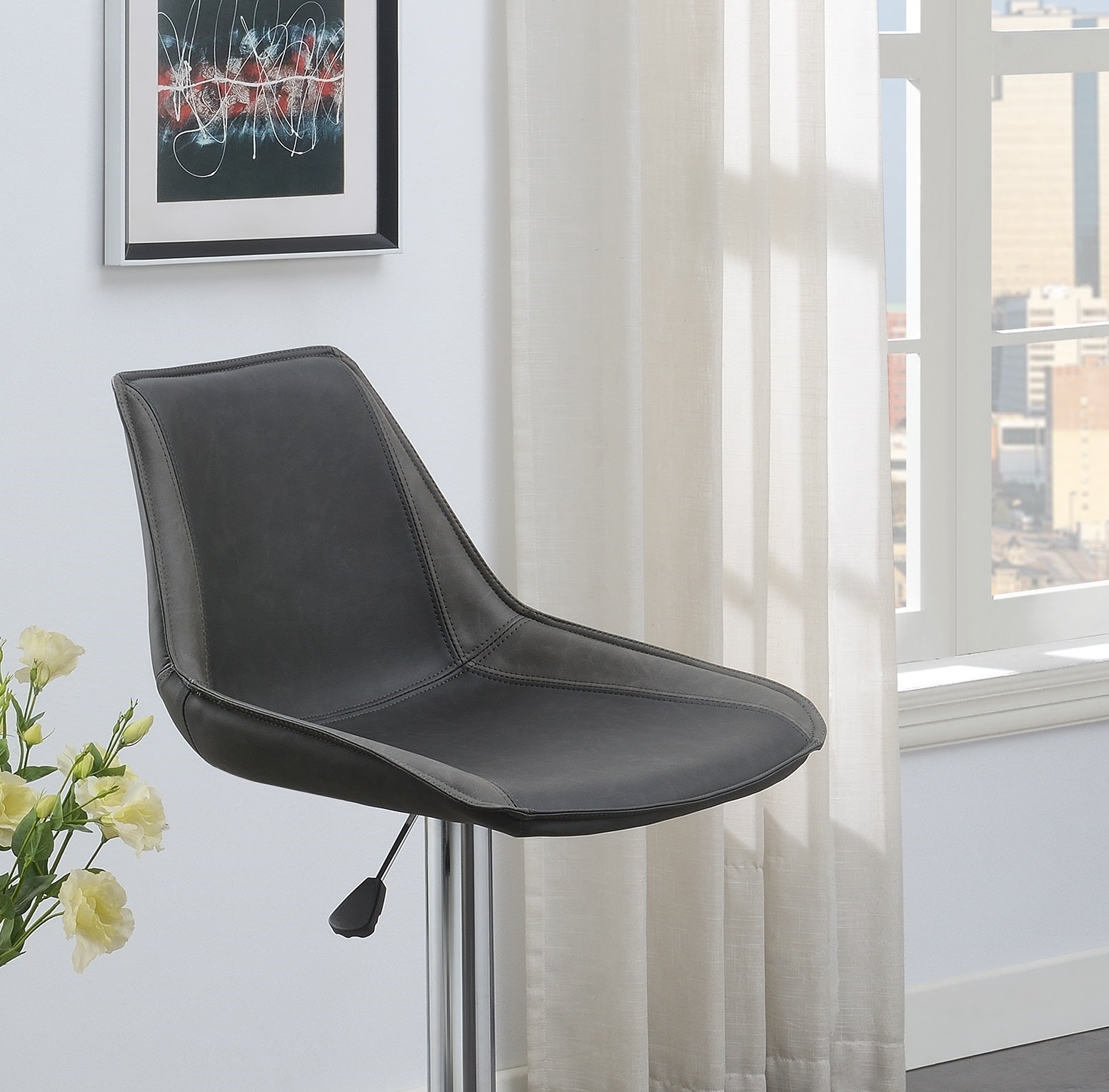 Name: Dining Kitchen Adjustable Bar stool Chair Ebony Color Wax Polyurethane Leather Chrome Base Modern Set of 2 Chairs / Bar Stool