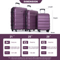 Expandable 3 Piece Luggage Sets Pc Lightweight & Durable Suitcase With Two Hooks, Spinner Wheels, Tsa Lock, 21 25 29 Dark Purple Dark Purple Pc