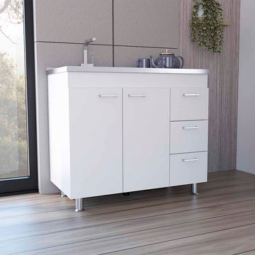 Name: Ferretti Base Cabinet , Three Drawers, Double Door, Four Legs -White