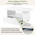 Flexible Cream Style Coffee Table With 2 Brake Wheels, Cloud Top Side Table With Drawer, Irregular Center Table With Large Storage For Living Room, White, 39.37''X 23.6'' White Particle Board