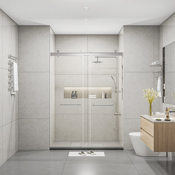 Frameless Sliding Glass Shower Doors 60" Width X 76"Height With 3 8" 10Mm Clear Tempered Glass, Brushed Nickel Brushed Nickel Bathroom American Design Stainless Steel Tempered Glass