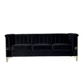 Fx P82 Bk Sofa Modern Sofa Couches For Living Room, 82.67Inches Velvet Velvet Tight Back Chesterfield Design Couch Upholstered Sofa With Metal Legs Decor Furniture For Bedroom Black Velvet 3 Seat