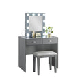 Name: Gray Makeup Vanity and Stool Set with 10 Lights and Usb Port and Power Outlet, 2x Drawers Luxurious Style Furniture