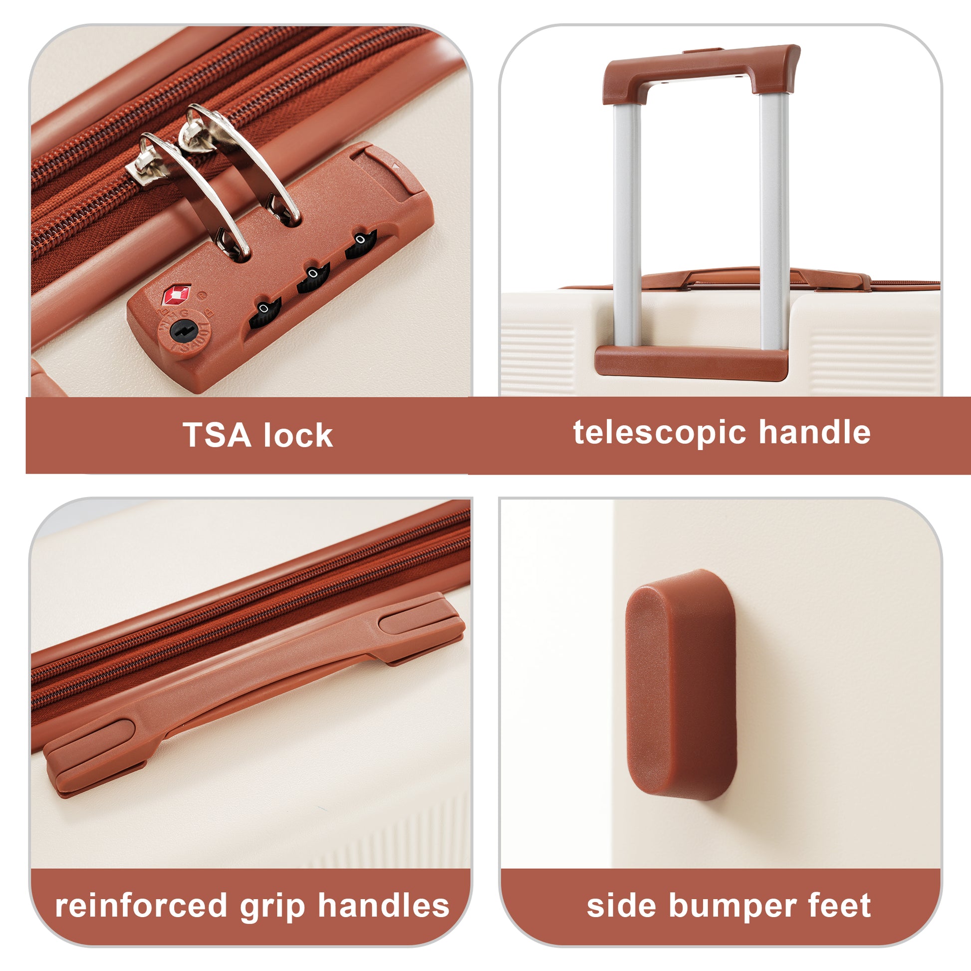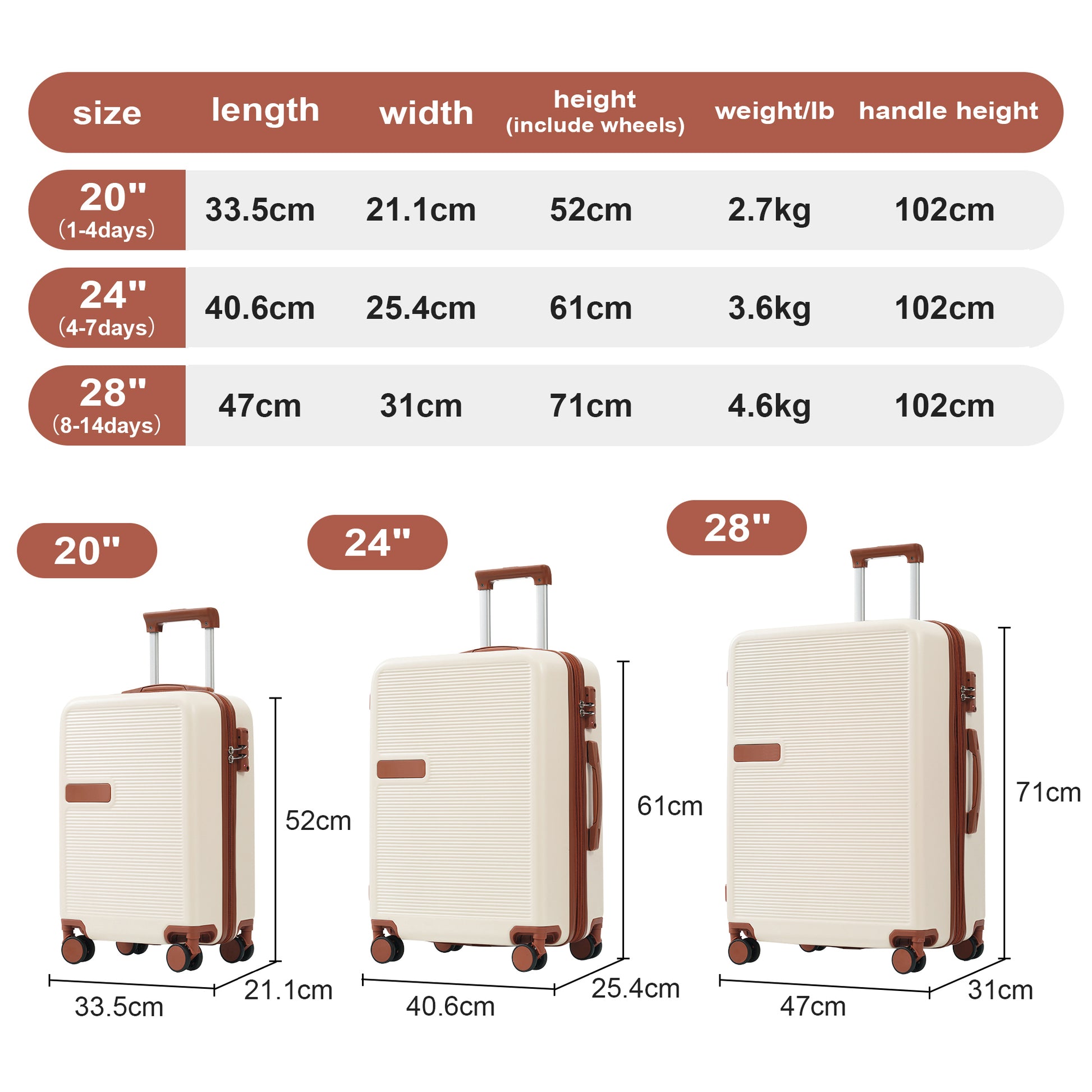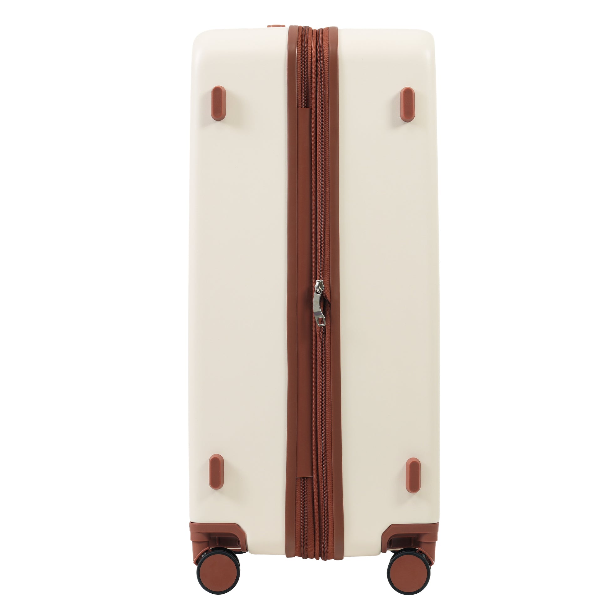 Hardshell Luggage Sets 3 Pcs Contrast Color Suitcase With Spinner Wheels And Tsa Lock 20" 24" 28" Available Brown White Abs