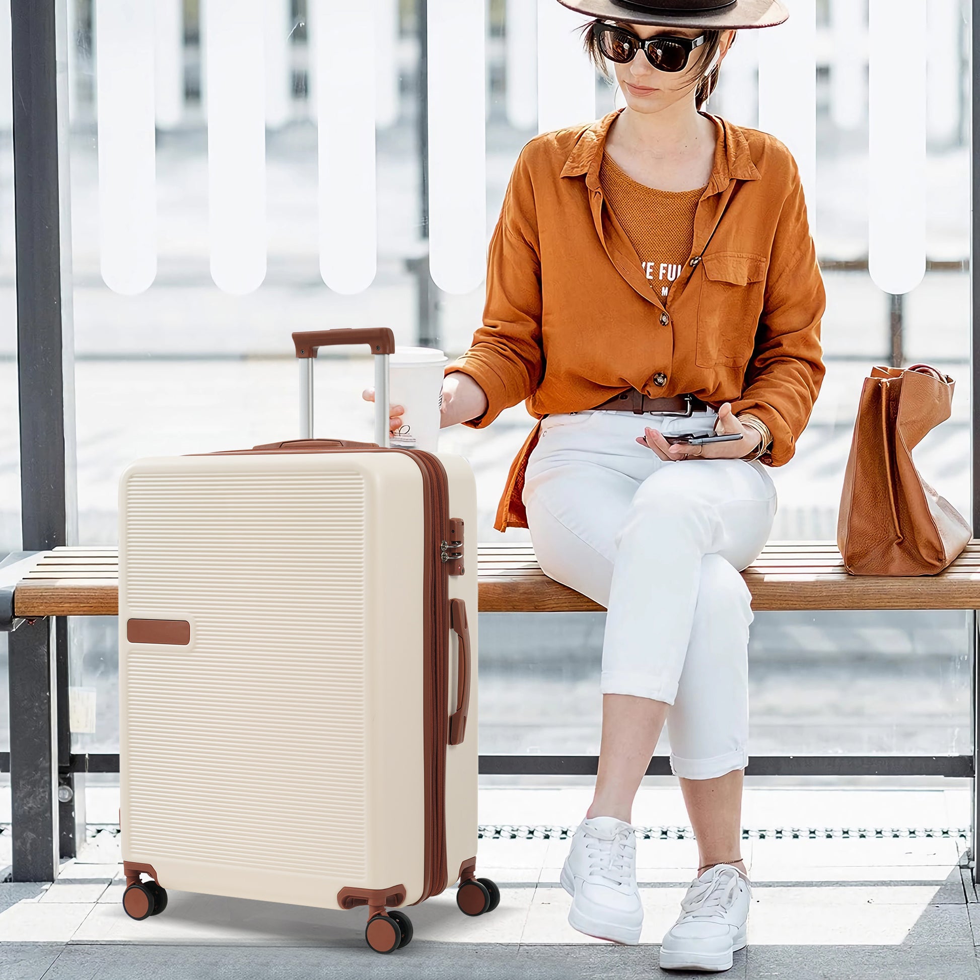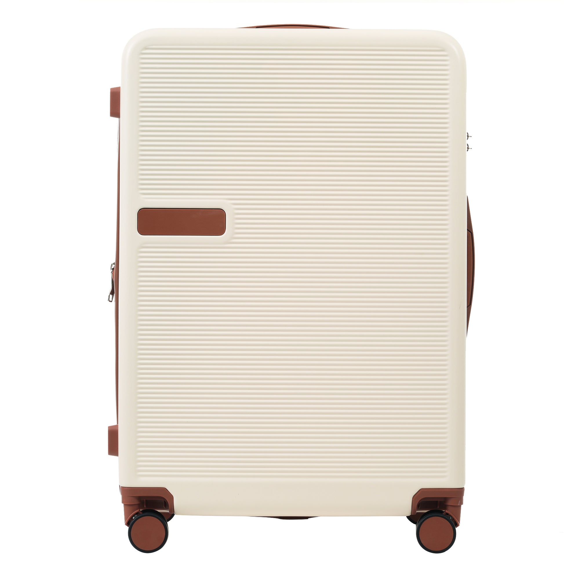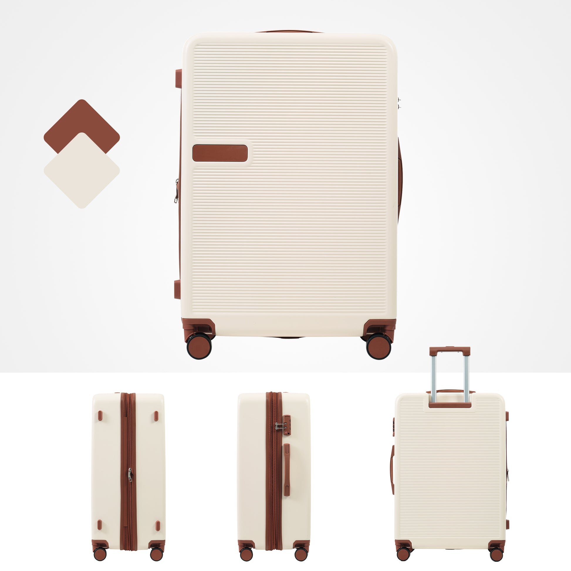 Hardshell Luggage Sets 3 Pcs Contrast Color Suitcase With Spinner Wheels And Tsa Lock 20" 24" 28" Available Brown White Abs