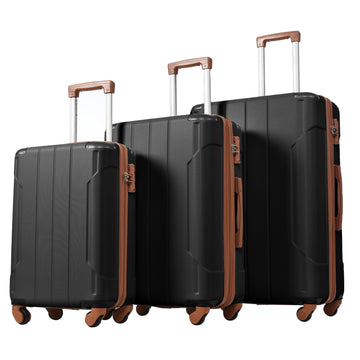 Hardshell Luggage Sets 3 Pcs Spinner Suitcase With Tsa Lock Lightweight 20''24''28'' Black Brown Abs