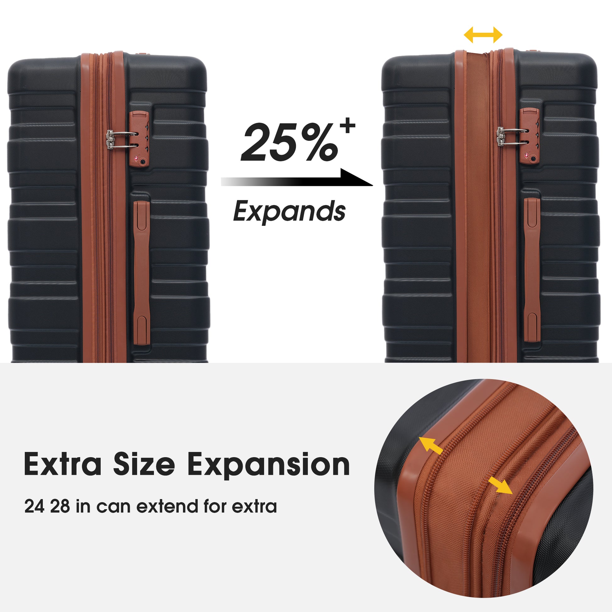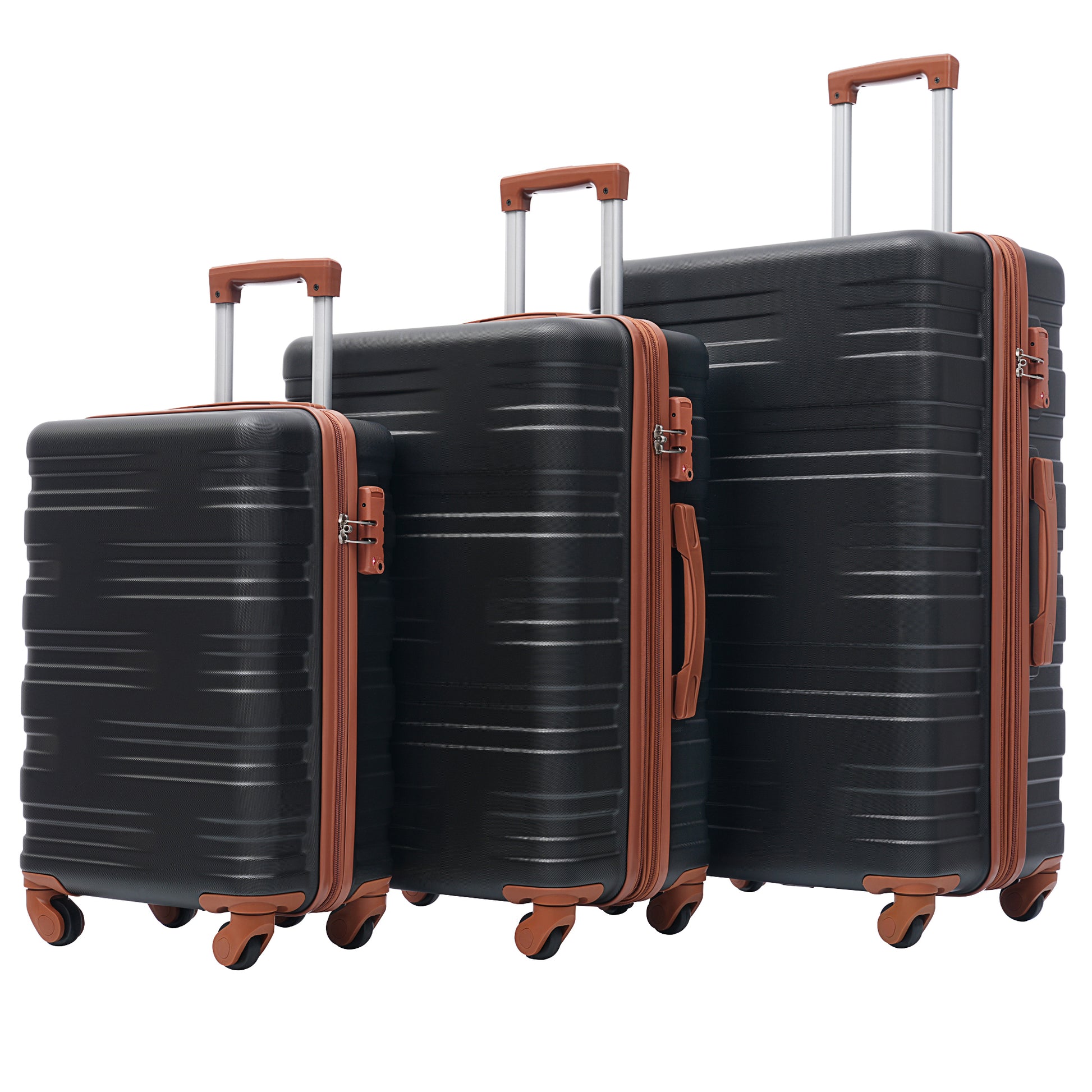 Hardshell Luggage Sets 3 Pcs Spinner Suitcase With Tsa Lock Lightweight 20''24''28'' Black Brown Abs