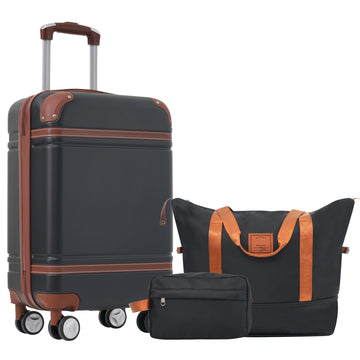 Hardshell Luggage Sets With Bags Carry On Suitcase Double Spinner Wheels With Tsa Lock ,Single Vintage Luggage 20 In,Black Black Abs