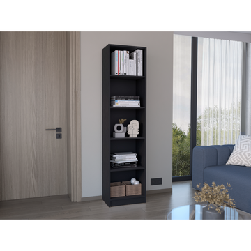 Home Xs Bookcase With 5 Tier Shelves And Slim Design Black Office Black Particle Board Particle Board