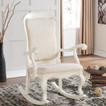 Ivory And Antique White Rocking Chair With Cabriole Leg Solid Ivory Primary Living Space Foam Traditional Rocking Chairs Rubberwood Solid Back Wood Fabric