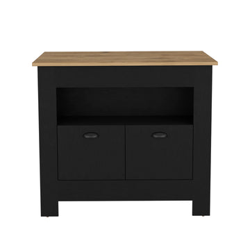 Kitchen Island Geneva, Black Macadamia Multicolor Particle Board Engineered Wood