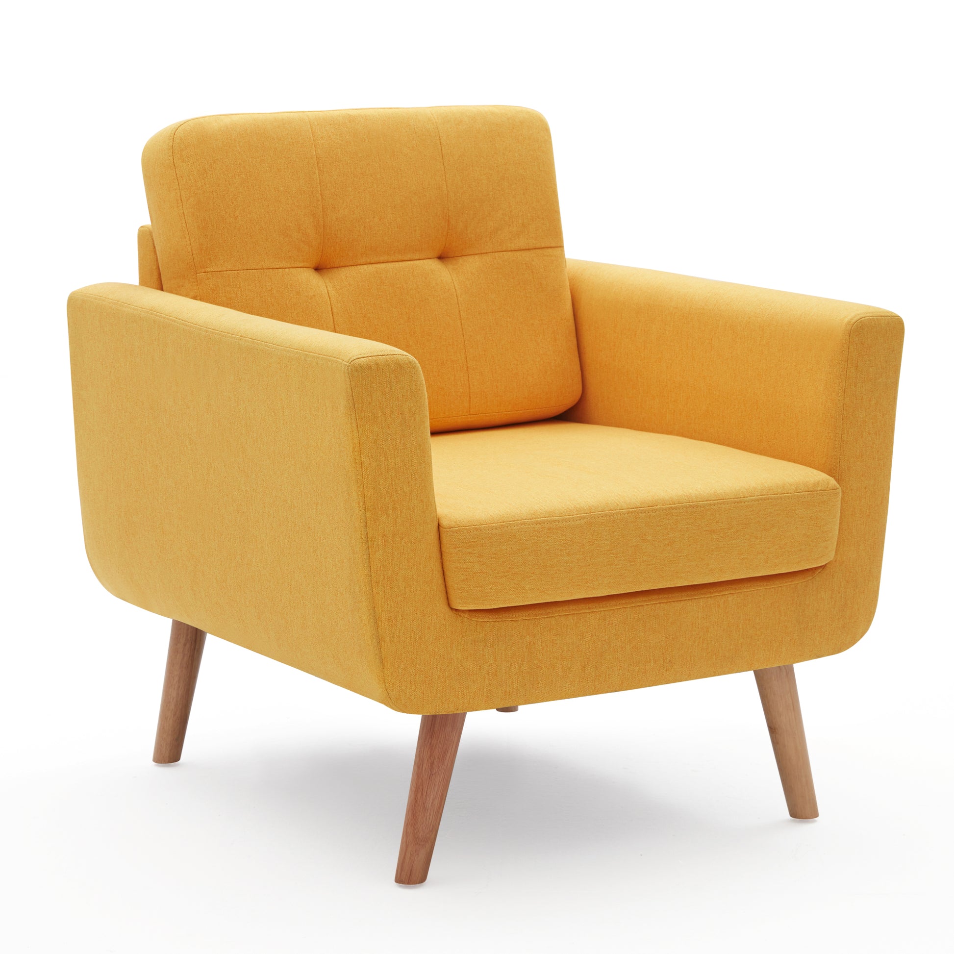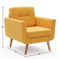 Linen Fabric Accent Chair, Mid Century Modern Armchair For Living Room, Bedroom Button Tufted Upholstered Comfy Reading Accent Chairs Sofa Yellow Yellow Solid Wood