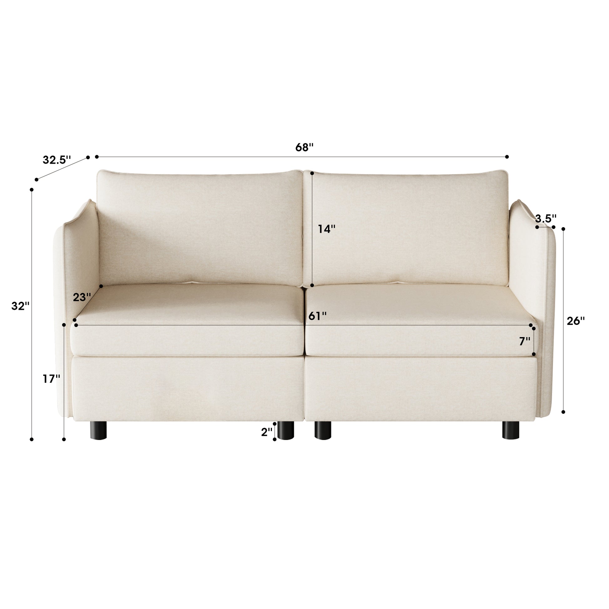 Love Seat Couches, 2 Seater Loveseat Mid Century Modern Sofa Couch With Storage For Small Spaces, Living Room, Dorm, Bedroom Beige Fabric