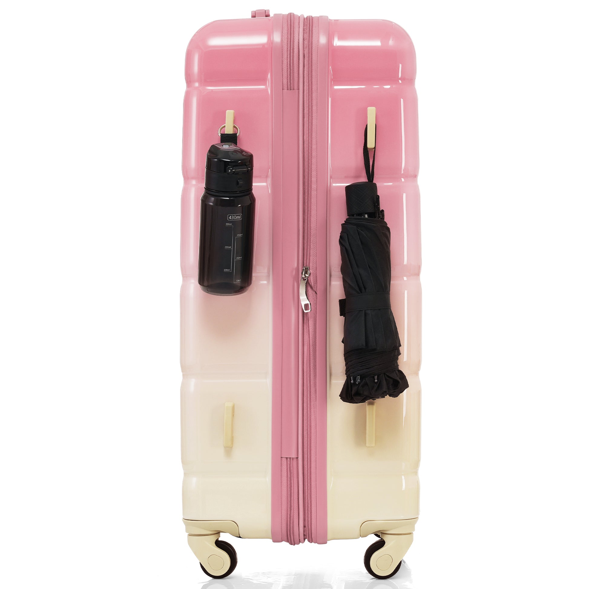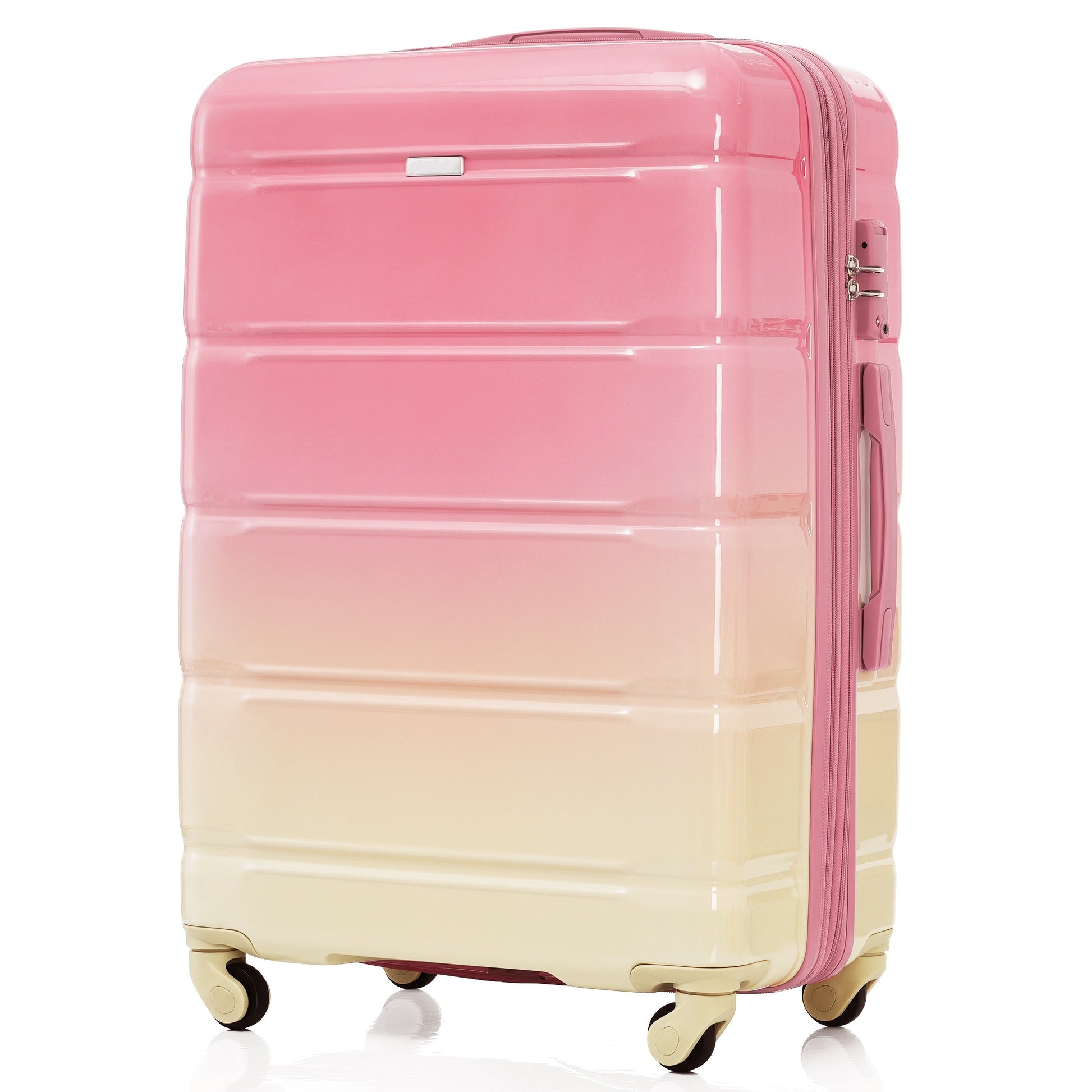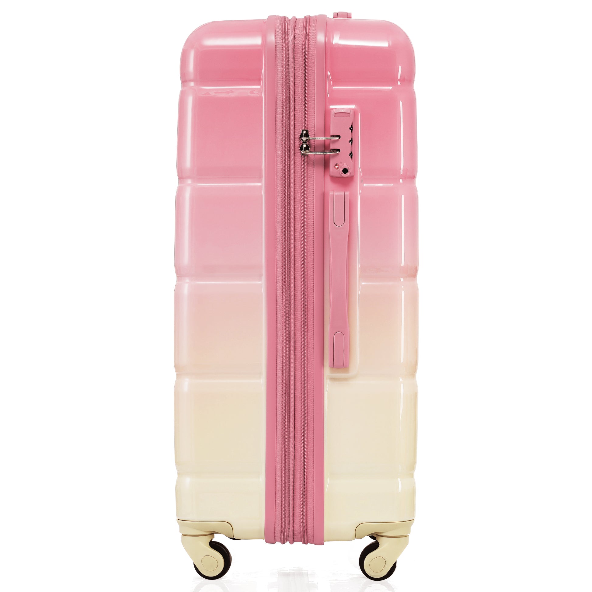 Luggage Set Of 3, 20 Inch With Usb Port, Airline Certified Carry On Luggage With Cup Holder, Abs Pc Hard Shell Luggage With Spinner Wheels, Gradient Pink Pink Abs Pc