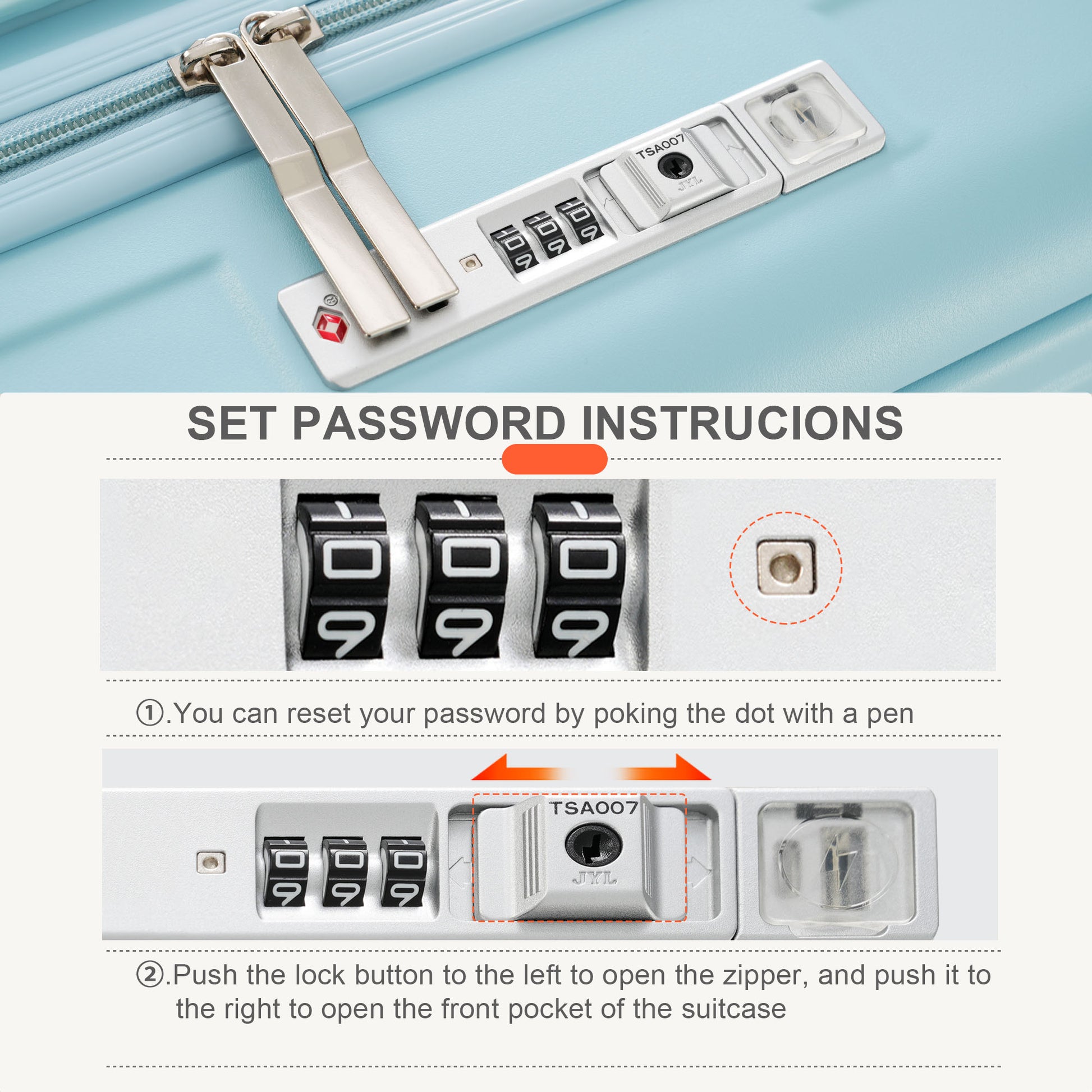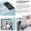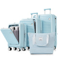 Luggage Set Of 4, 20, 24, 28Inch With Usb Port, 20, 24Inch With Front Opening Design Airline Certified Carry On Luggage With Cup Holder, Abs Hard Shell Luggage With Expandable Travel Bag, Light Blue Blue Abs