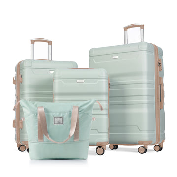 Luggage Sets 4 Piece, Expandable Abs Durable Suitcase With Travel Bag, Carry On Luggage Suitcase Set With 360 Spinner Wheels, Grey Green And Golden Green Abs