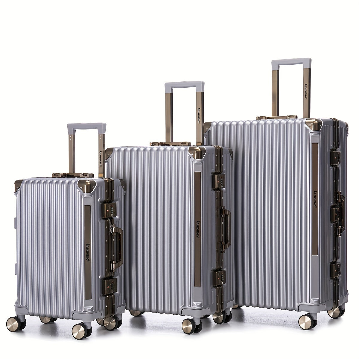 Luggage Sets Expandable Aluminum 20 24 28 Inch Three Model Set, Stylish Suitcase With Aluminum Frame Password Lock, Suitable For Travel Suitcases And Suitcases Antique Gray Contemporary Aluminum