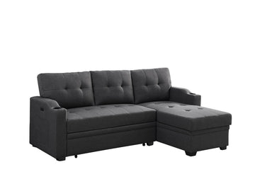 Mabel 83" Dark Gray Linen Fabric Sleeper Sectional With Cupholder, Usb Charging Port And Pocket Dark Gray Linen