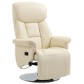 Manual Recliner Chair For Adults, Adjustable Swivel Recliner With Footrest, Padded Arms, Pu Leather Upholstery And Steel Base For Living Room, Cream White Cream White Pu Leather