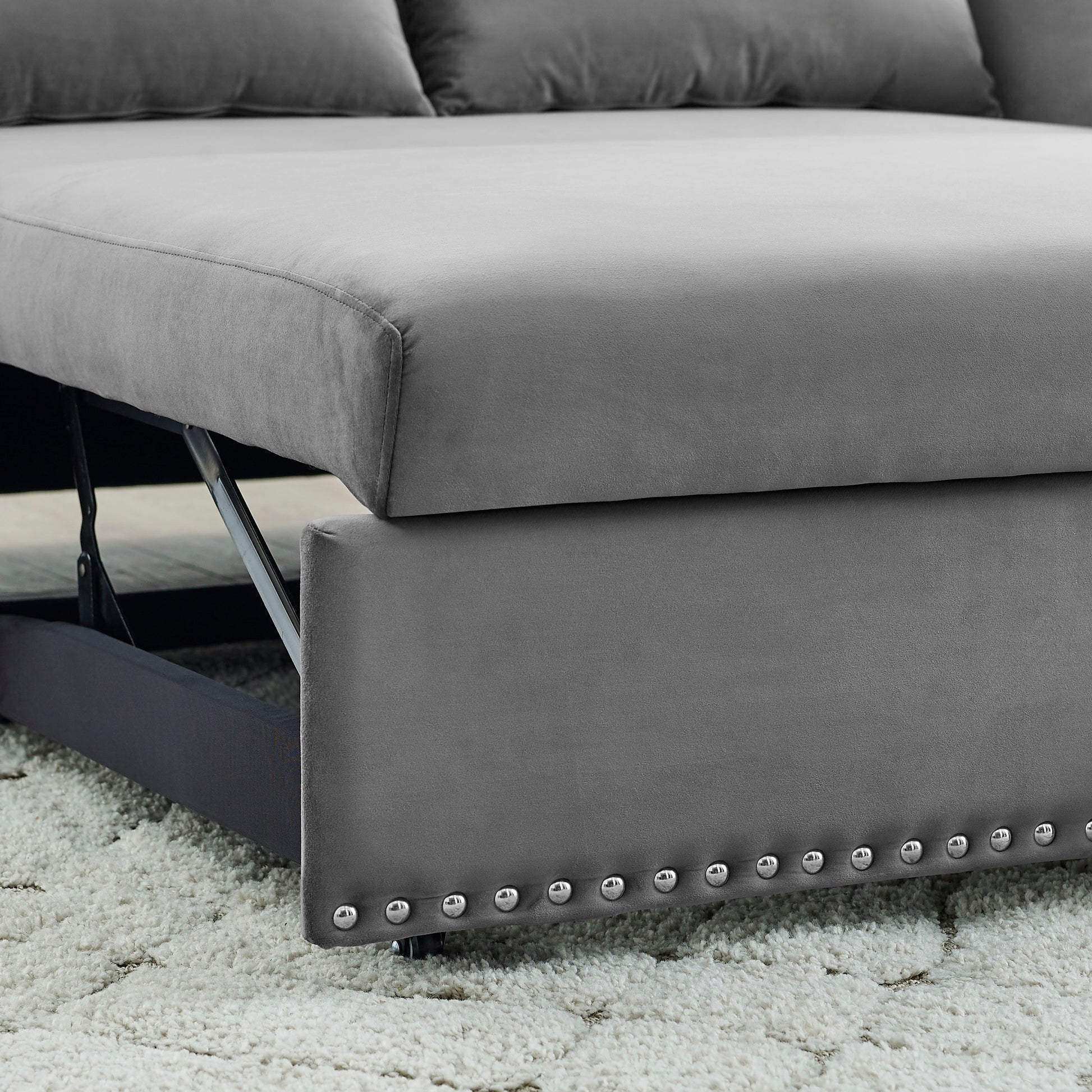 Mh" Sleeper Sofa Bed W Usb Port, 3 In 1 Adjustable Sleeper With Pull Out Bed, 2 Lumbar Pillows And Side Pocket, Soft Velvet Convertible Sleeper Sofa Bed, Suitable For Living Room Bedroom Grey Foam Velvet