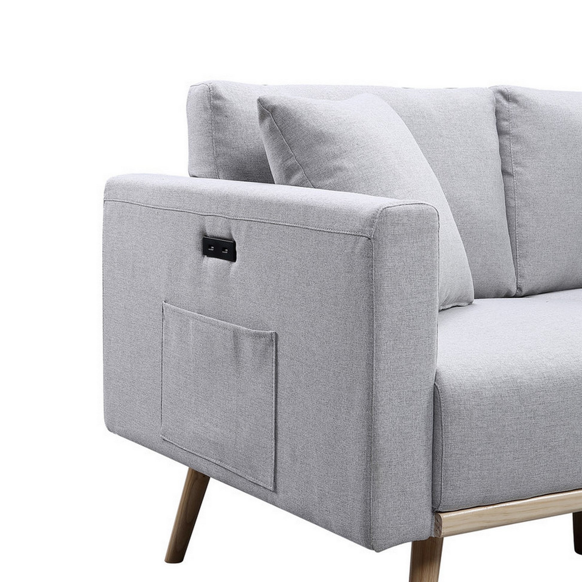 Mico 75 Inch Modern Sofa, Usb Charging Ports And Side Pocket, Light Gray Gray Solid Wood 3 Seat