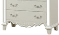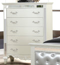 Introducing our enchanting chest, a captivating addition to our romantic-era inspired bedroom set. Blending traditional charm with modern sophistication, this chest is meticulously designed to elevate your bedroom decor with its exquisite details and timeless elegance. Crafted with a matching White finish, this chest exudes a sense of refinement and luxury. Each drawer is adorned with mirror trimmings, casting a dazzling glow and adding a touch of opulence to its design. The combination of traditional craftsmanship and contemporary accents makes this chest a stunning statement piece that effortlessly enhances any bedroom setting.