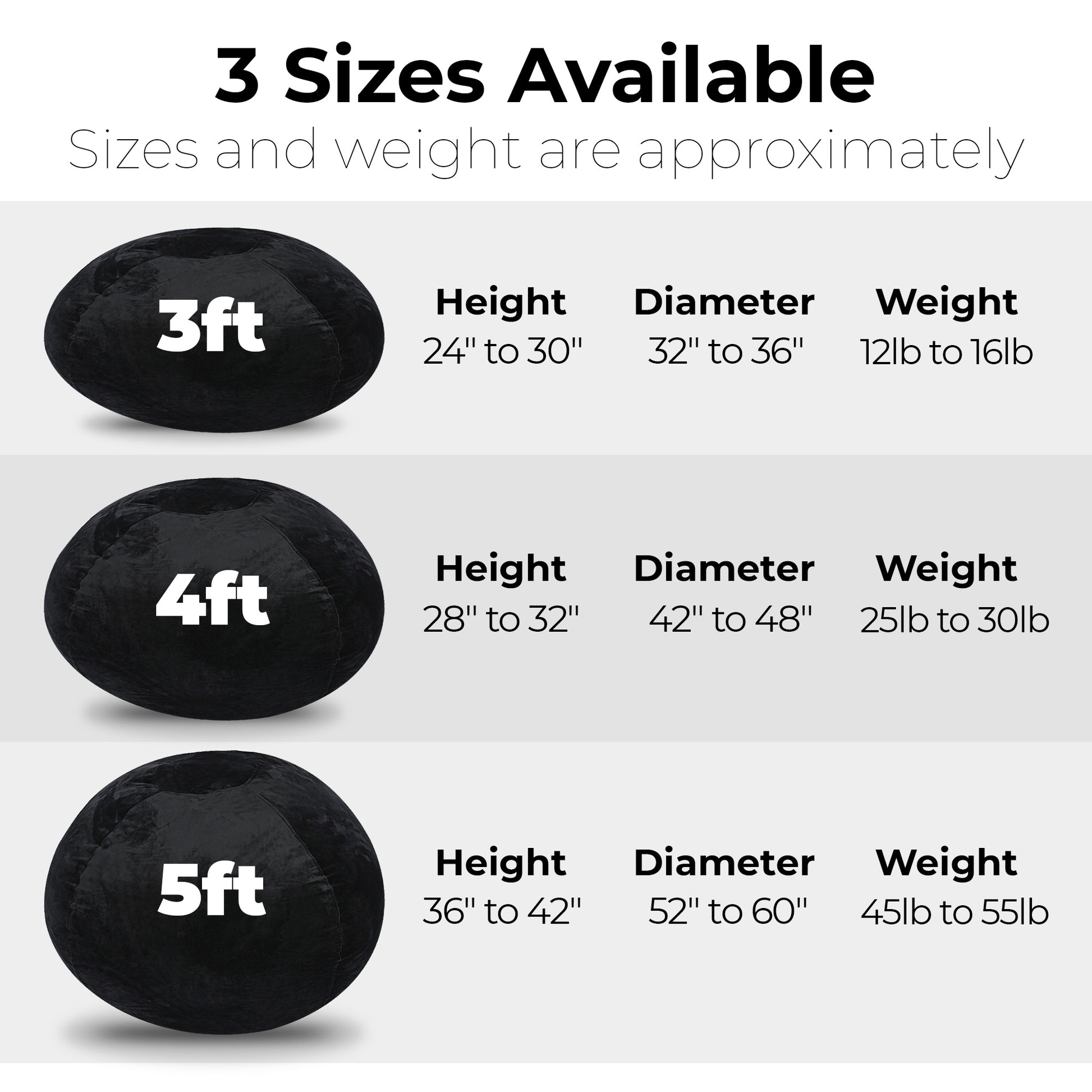 • PERFECT Size: Measuring to perfection in any space, this 4ft Minky Velvet bean bag is approximately 45" D 30" H, with a weight of approx. 27 lbs. Great for children's rooms, reading corners, or your cozy corner at home, making it perfect as a kid's chair or as a bean bag chair for adults.