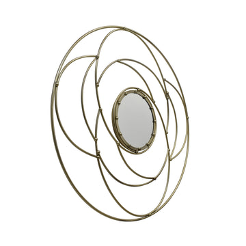 This Circular Accent Mirror can open up even the stuffiest, most cramp space in the home. Lose yourself in this mesmerizingly modern selection; concentric ellipses frame the face glamorously with willowy metal tendrils available in the finish of your choosing. Great for both decorative purposes or for wherever you put yourself together for the day.Includes: One (1) MirrorMaterial: Tempered glassFrame material: IronColor: MirrorFrame color: Silver/GoldAssembly required: NoHand crafted detailsDimensions: 35.25 inches high x 35.25 inches wide x 1.5 inches deepCountry of Origin: China