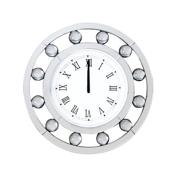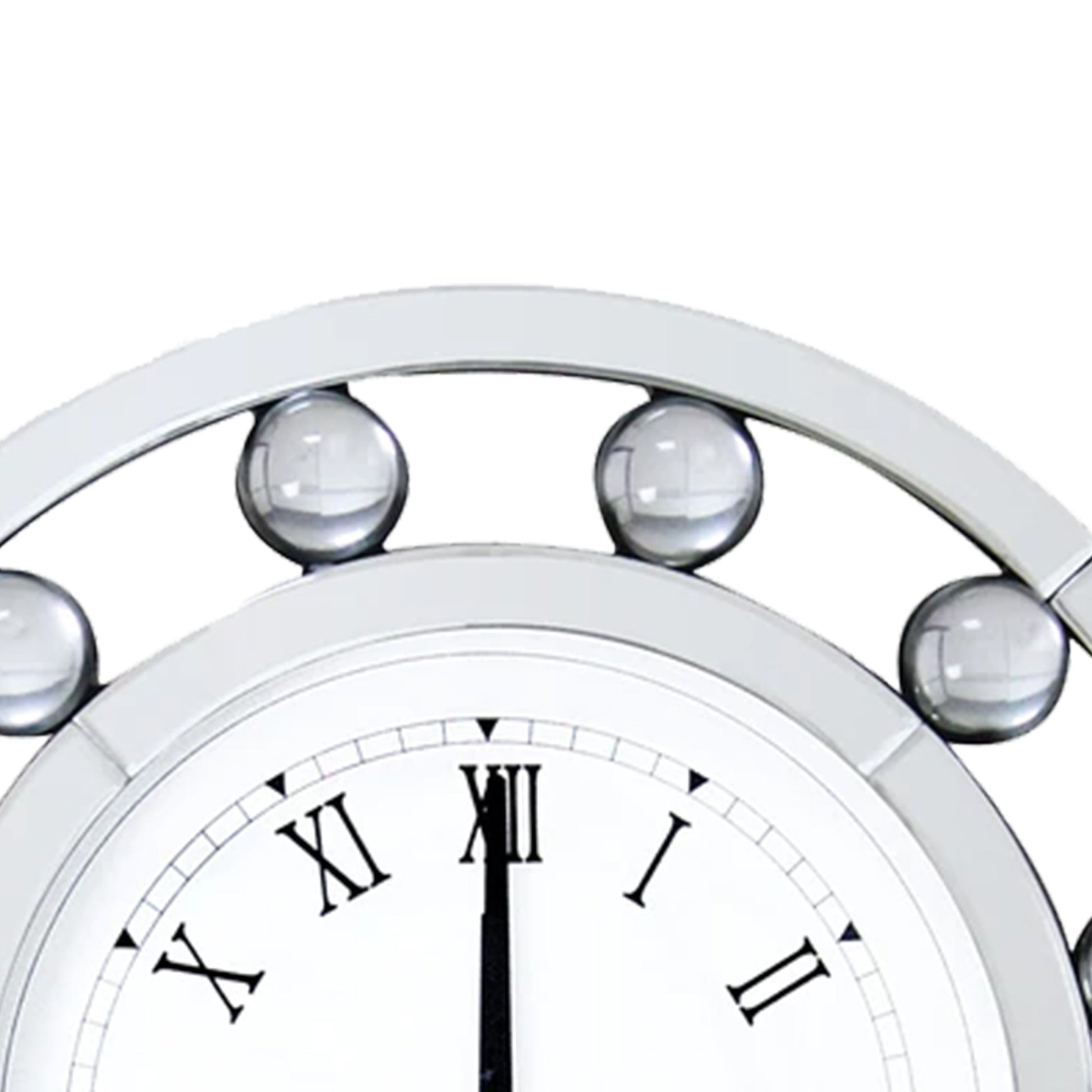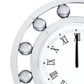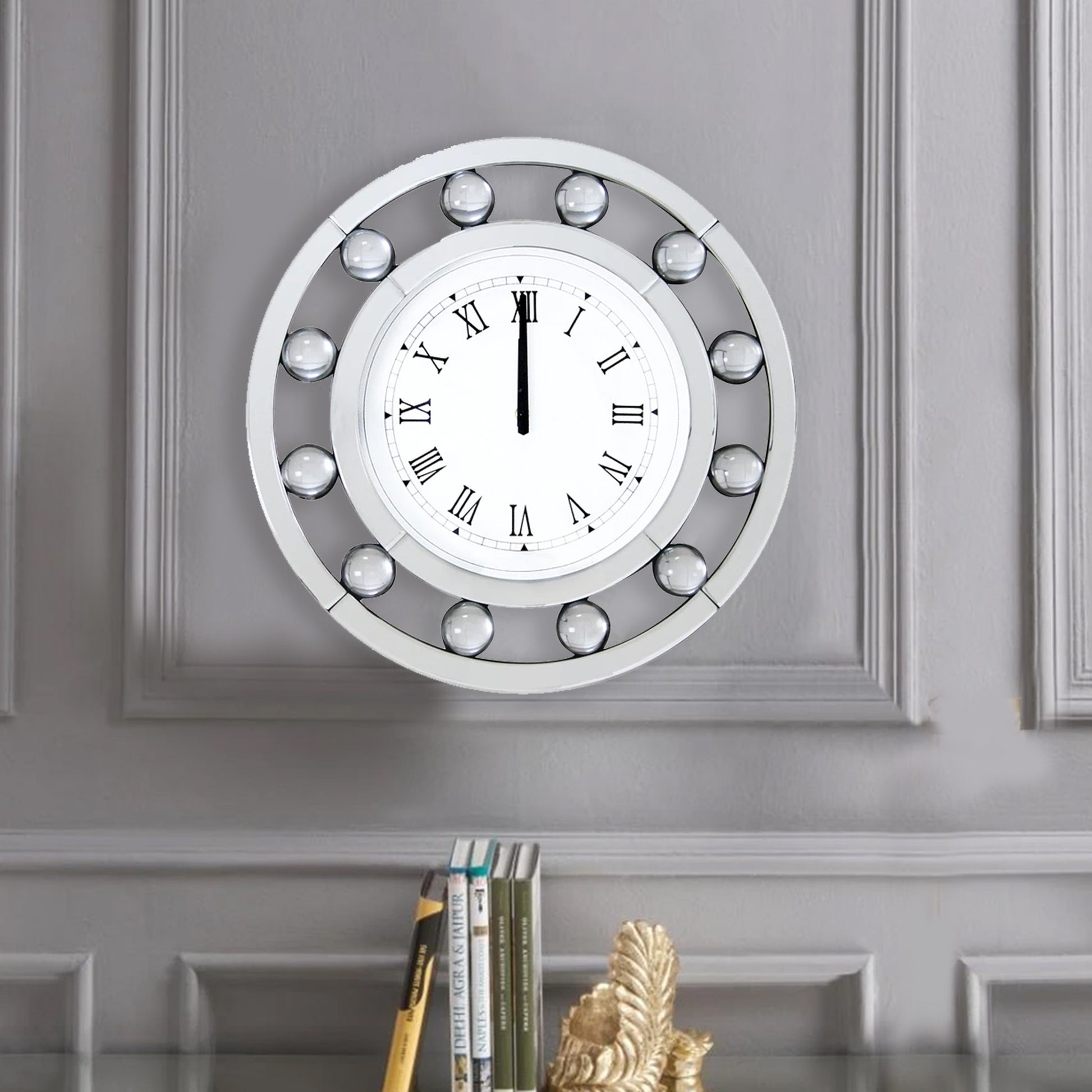 Mirrored Round Shape Wooden Wall Clock, White White Engineered Wood