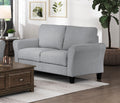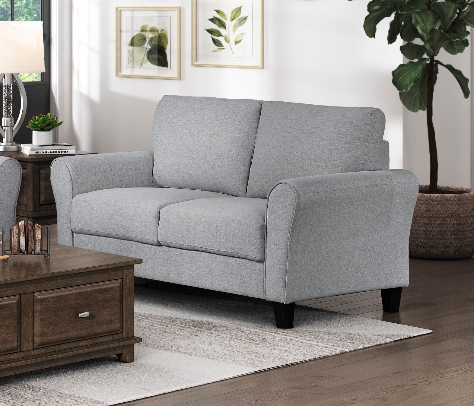 Name: Modern 1pc Loveseat Dark Gray Textured Fabric Upholstered Rounded Arms Attached Cushions Transitional Living Room Furniture