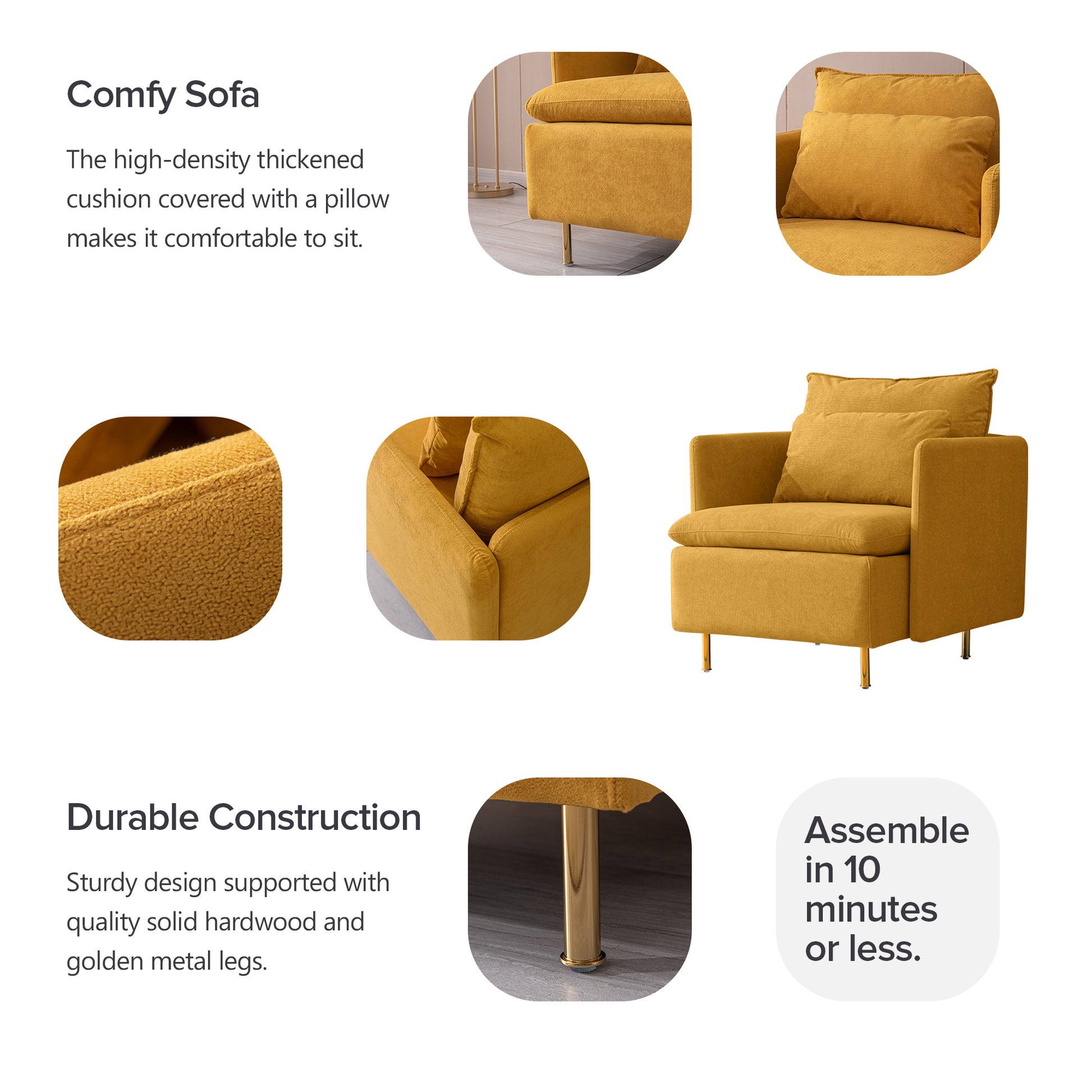Name: Modern fabric accent armchair,upholstered single sofa chair,Yellow Cotton Linen-30.7''