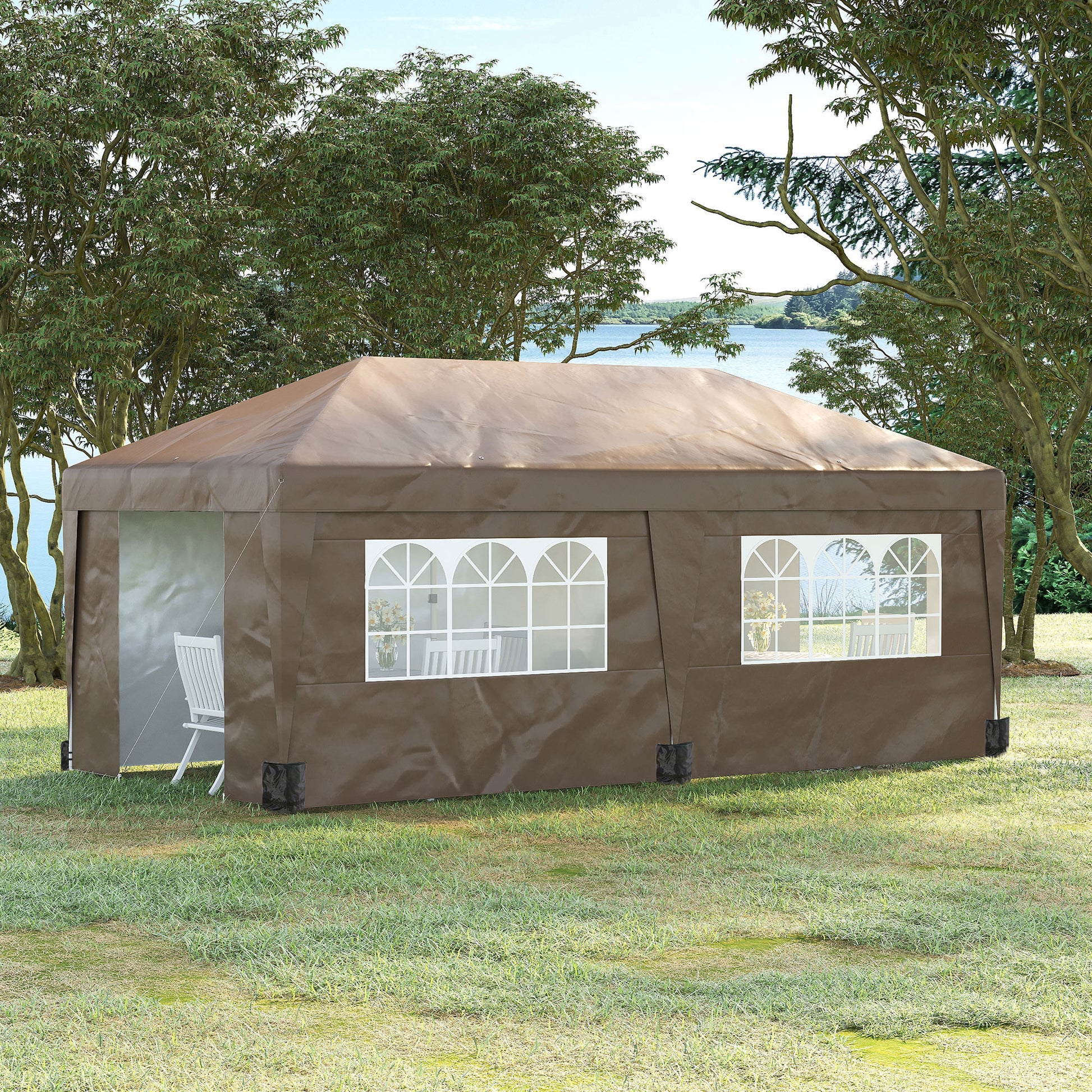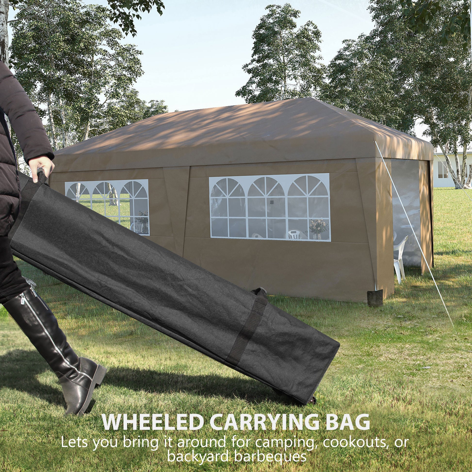 Outsunny 10' X 19.5' Pop Up Canopy Tent With Sidewalls, Upf 30 Height Adjustable Large Party Tent Event Shelter With Leg Weight Bags And Wheeled Carry Bag For Garden, Patio, Brown Brown Steel