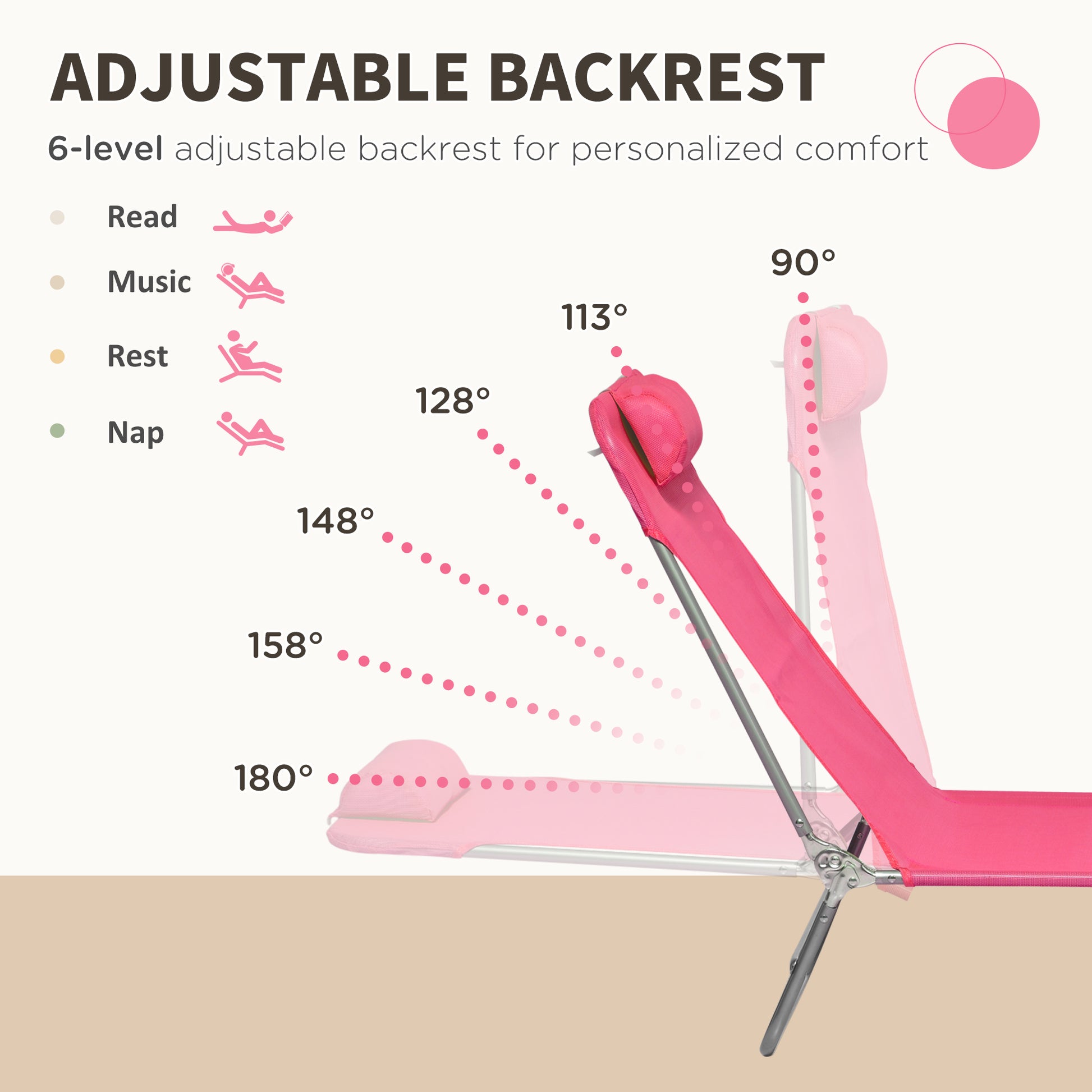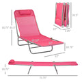 Outsunny 2 Piece Folding Chaise Lounge Chairs, Pool Sun Tanning Chairs, Outdoor Lounge Chairs With 6 Position Reclining Back,Mesh Seat, Headrest For Beach, Yard, Patio, Pink Pink Steel