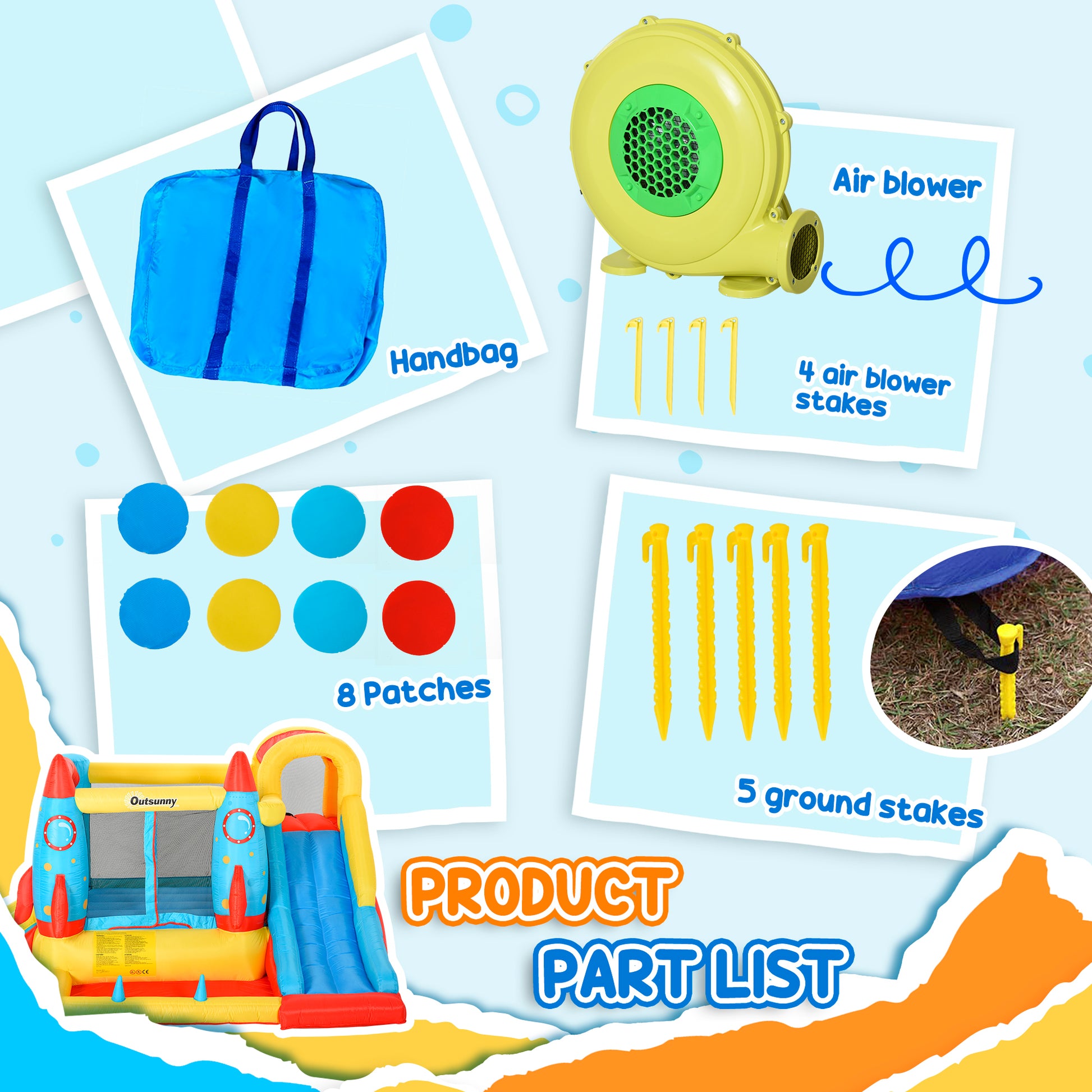 Outsunny Kids Inflatable Water Slide, 4 In 1 Bounce House Jumping Castle With 2 Slides, Climbing Wall, Trampoline, & Water Pool Area, Air Blower Colorful Oxford Fabric