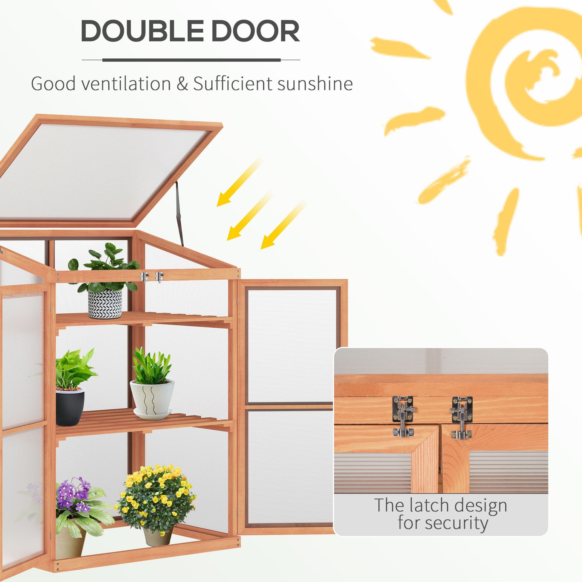 Outsunny Wooden Cold Frame Small Mini Greenhouse Cabinet For Outdoor And Indoor, 30" L X 24" W X 44" H, Natural Natural Wood Wood