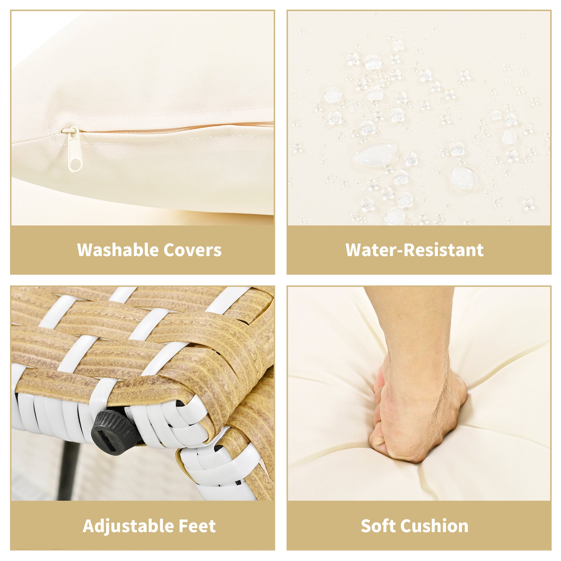 | Summary | Elevate your outdoor comfort with our All-Weather Pe Rattan Daybed. This elegantly designed piece features a durable metal frame and a retractable canopy secured by straps. The round sectional sofa doubles as an organized daybed, complete with an adjustable table. Enjoy easy maintenance with washable covers and stylish buttoned cushions. It includes 5 cozy pillows and cushions, crafted with two-tone woven rattan. Adjustable feet ensure stability on any surface, and you can choose from 2 chic color options to suit your outdoor space. |
